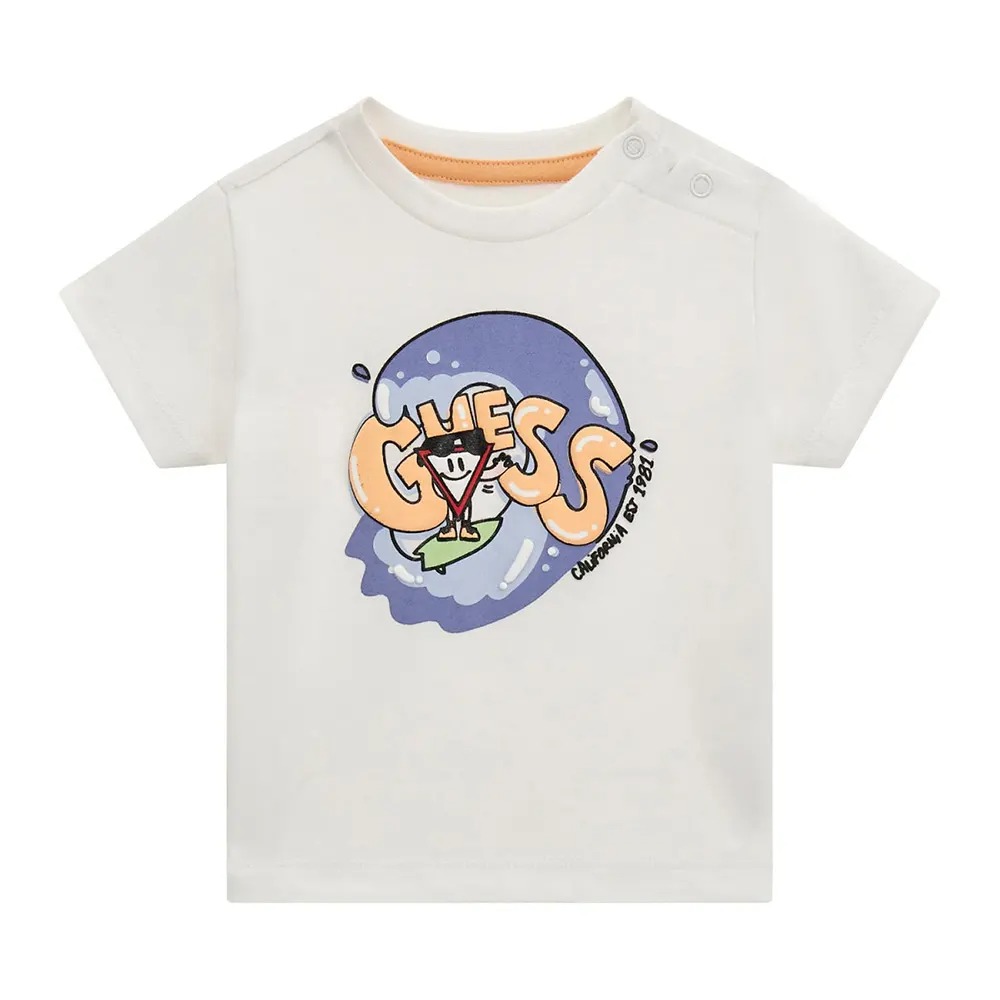 La t-shirt bianca per neonato con una divertente applicazione Guess è l'aggiunta perfetta al guardaroba di ogni bambino. Realizzata con materiali di alta qualità, questa maglietta non è solo comoda da indossare, ma anche squisitamente progettata con dettagli divertenti. L'applicazione conferisce un aspetto giocoso e la scritta "Guess" aggiunge stile e romanticismo. Con questo accessorio, il tuo bambino sarà incredibilmente carino e alla moda in qualsiasi ambiente.