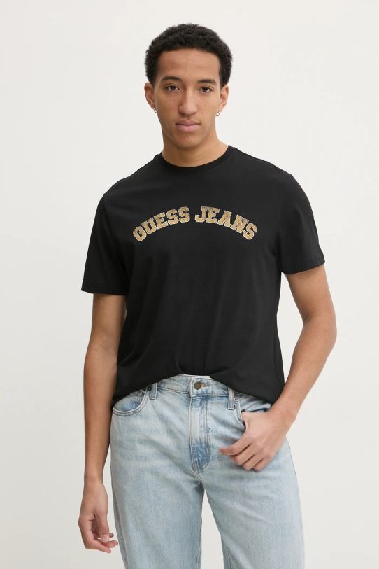 T-shirt girocollo ispirata al mondo del college con cuciture a contrasto e un grintoso logo GUESS JEANS sul petto. Articolo realizzato in 100% cotone.