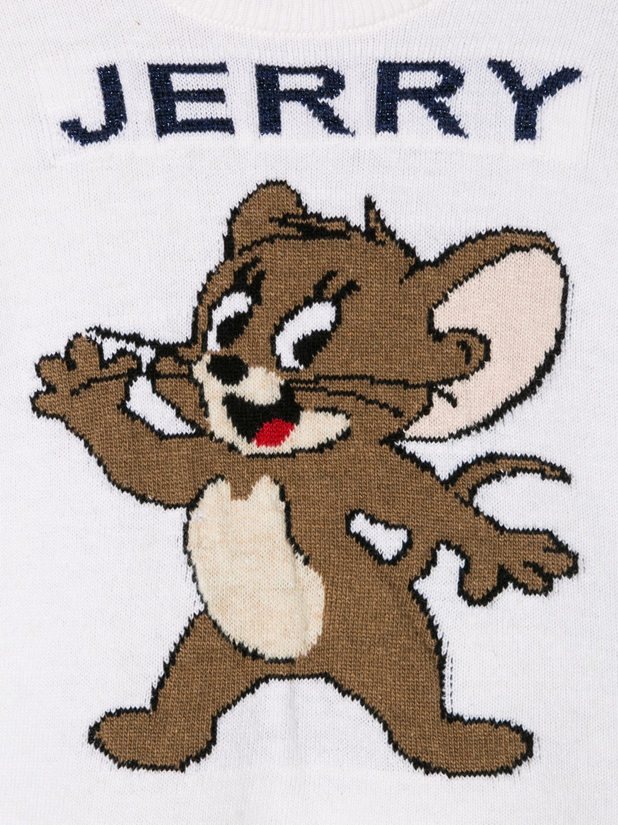 Maglione Jerry con ruches multicolore di Monnalisa. Modello con girocollo, maniche lunghe, vestibilità morbida, lavorazione intrecciata e orlo increspato.
