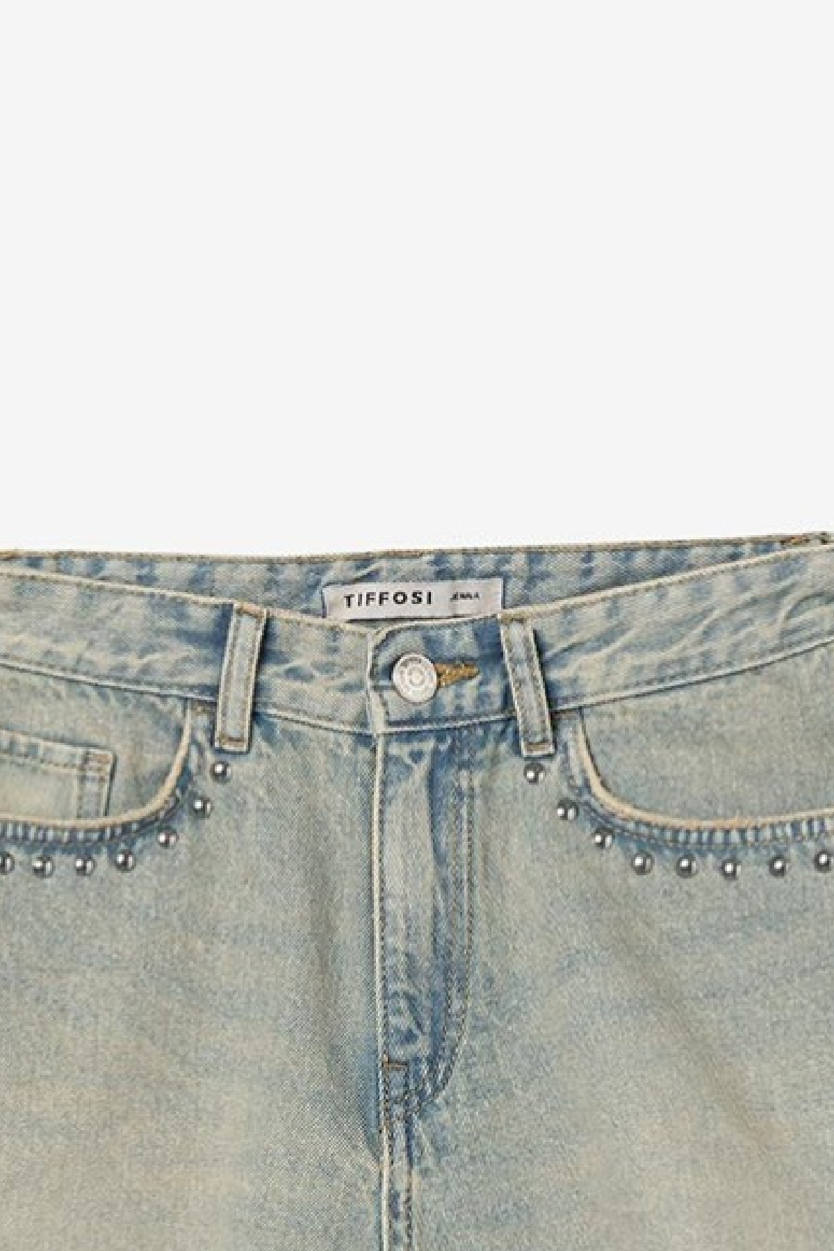 Pantaloncini in denim con cinque tasche. Chiusura con zip e bottone in metallo sul davanti.