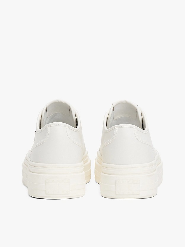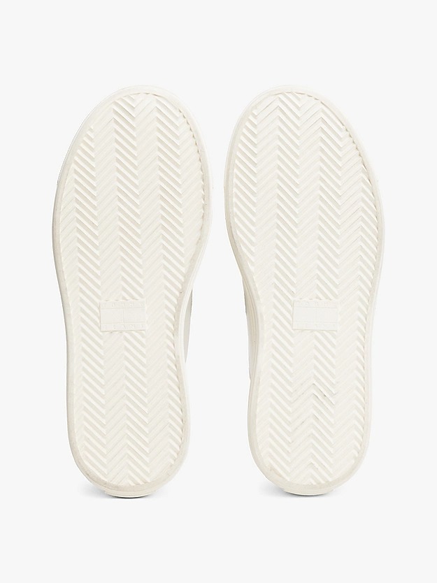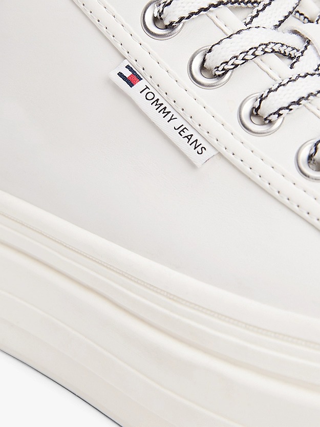 L'esterno in pelle liscia dona uno stile minimalista alle sneakers con suola alta e spessa, abbellite dalle cuciture decorative a contrasto.