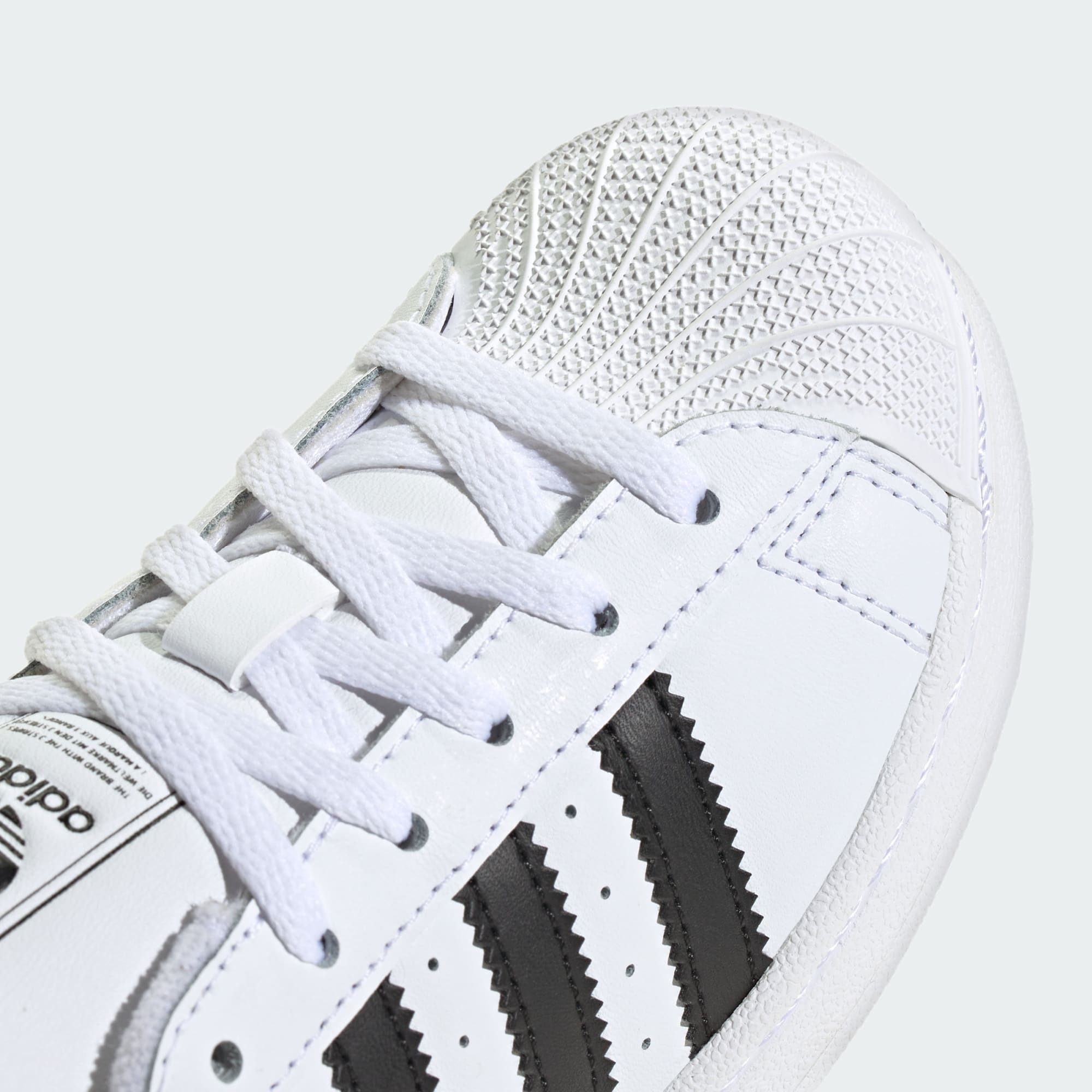 I dettagli iconici di queste adidas Superstar per bambini continuano a resistere alla prova del tempo. Fedeli al design originale degli anni '70, queste versatili sneaker continuano a distinguersi con l'inconfondibile punta a conchiglia in gomma e le 3 strisce dentellate. Per oltre 50 anni, le adidas Superstar sono passate dal parquet alla strada e ora sono pronte a passare il testimone alla prossima generazione di icone.
