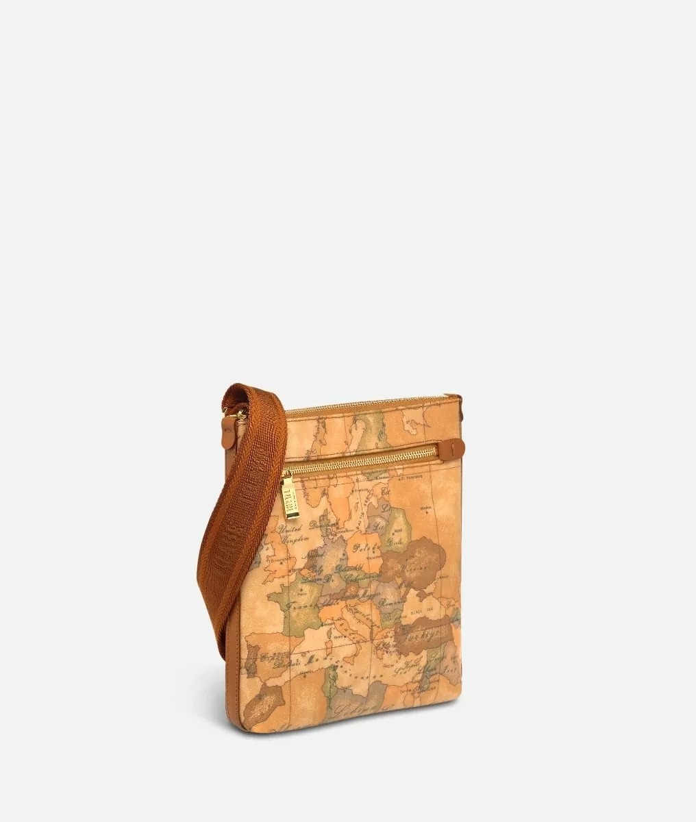 Bandoliera unisex in tessuto stampato con cartina geografica Geo Classic, con tracolla regolabile in nastro con logo 1AClasse, tasca frontale con zip, chiusura con zip. Con la sua forma piatta è pratica e funzionale, ideale per il tempo libero, per lei e per lui.