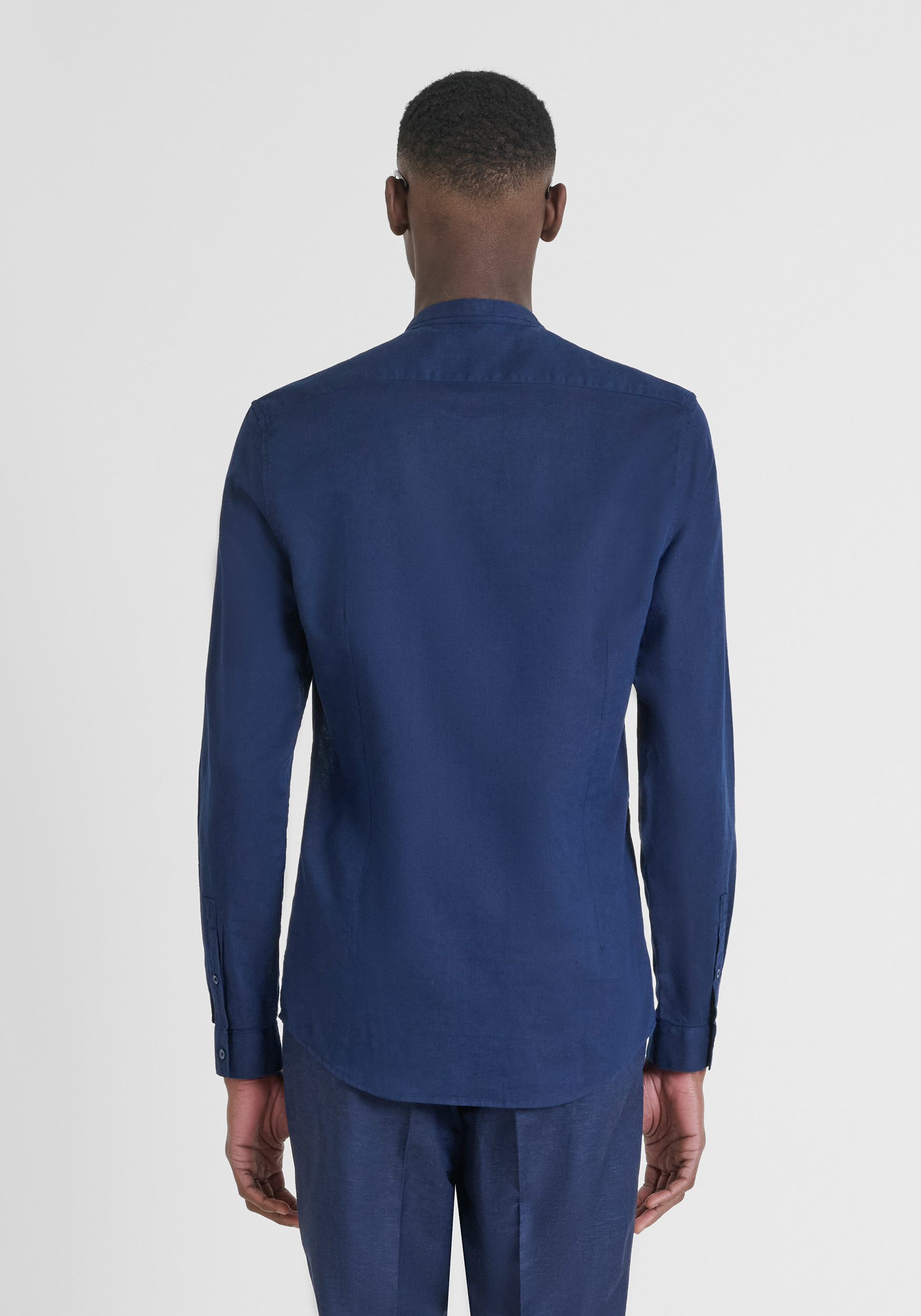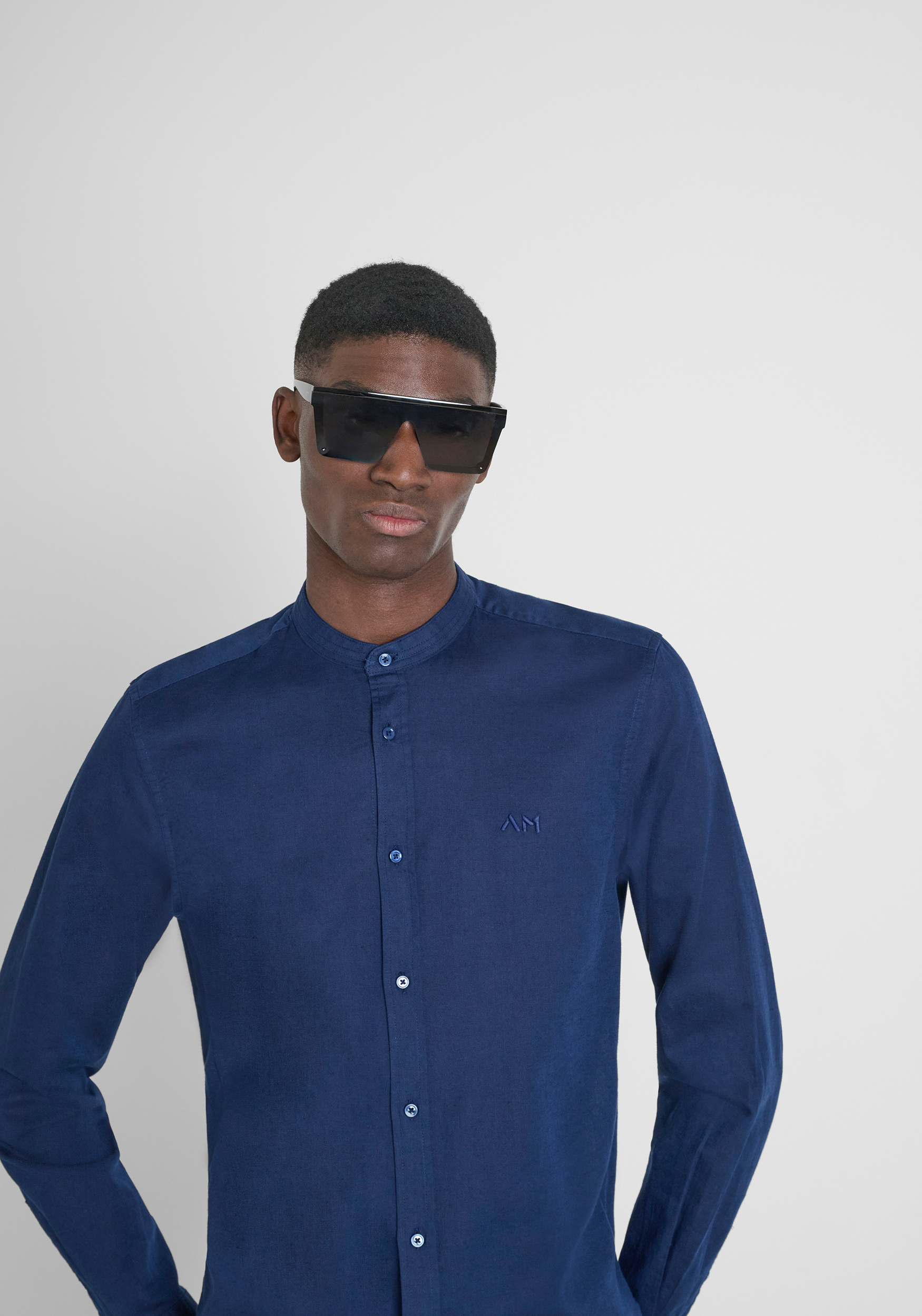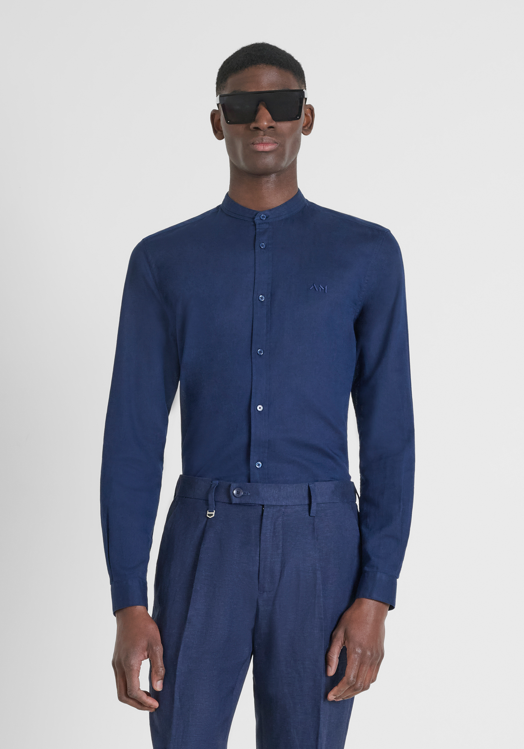 Camicia slim fit modello "Toledo", realizzata in misto cotone e lino dall'effetto morbido. Senza pince sul retro, con colletto alla coreana e polsini con chiusura a un bottone. Senza pinces sul retro, con colletto alla coreana e polsini con chiusura a un bottone. Piccolo logo Antony Morato ricamato sul petto. Questa camicia è la perfetta alleata per tutti i tuoi look, come sotto giacca o portata da sola.