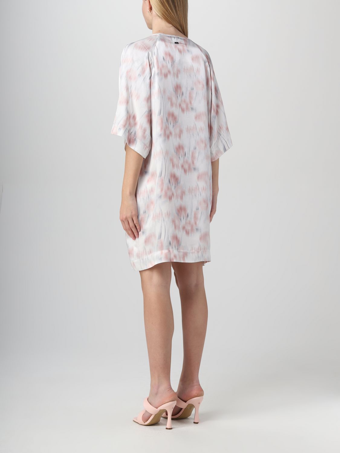 Abito da donna con girocollo, mezze maniche e dettaglio fantasia all over floreale dai colori leggeri, orlo dritto, vestibilità regolare