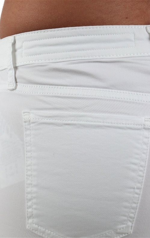 Pantalone da donna in cotone, stile skinny elasticizzato modello a 5 tasche a vita alta, caratterizzato da una patch logata applicata sulla parte posteriore e chiusura a bottone con zip nascosta.