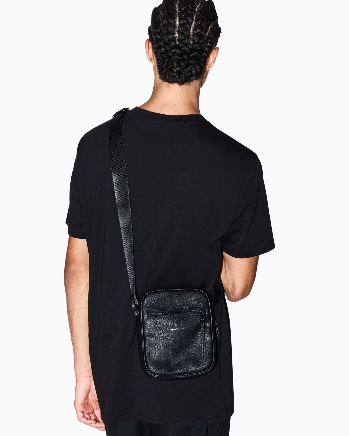 Borsa a tracolla realizzata in materiale resistente effetto martellato con logo applicato sul davanti. Il modello ha tracolla regolabile, chiusura con zip, tasca esterna.