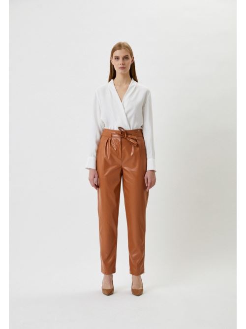 Pantaloni in similpelle con laccio in vita