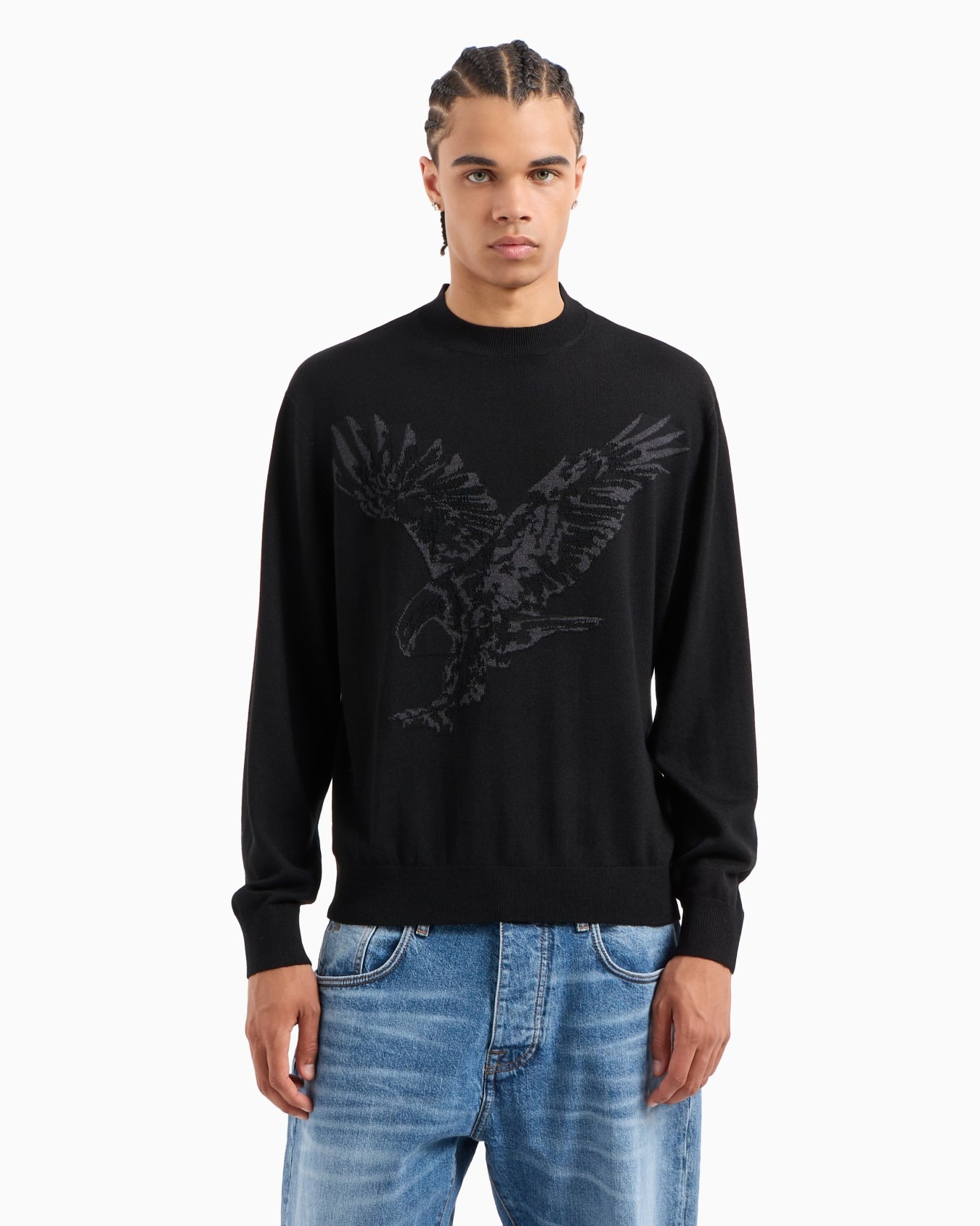 Questo maglione realizzato in misto lana rasata riflette il DNA e lo spirito Armani Exchange: il modello infatti presenta sul davanti il ricamo di un'aquila, animale simbolo di tutto il mondo Armani.