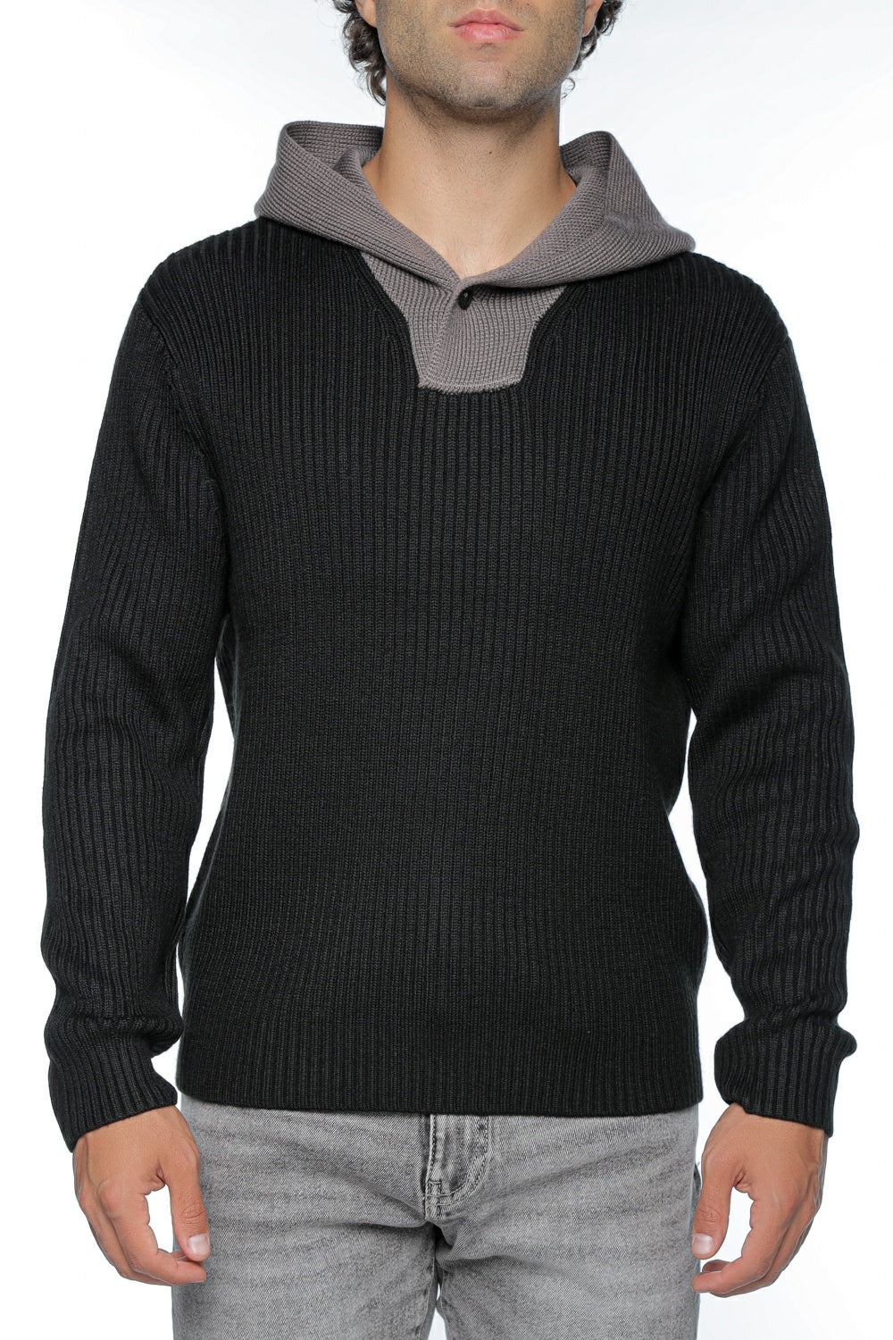 * Cappuccio con bordo a contrasto.