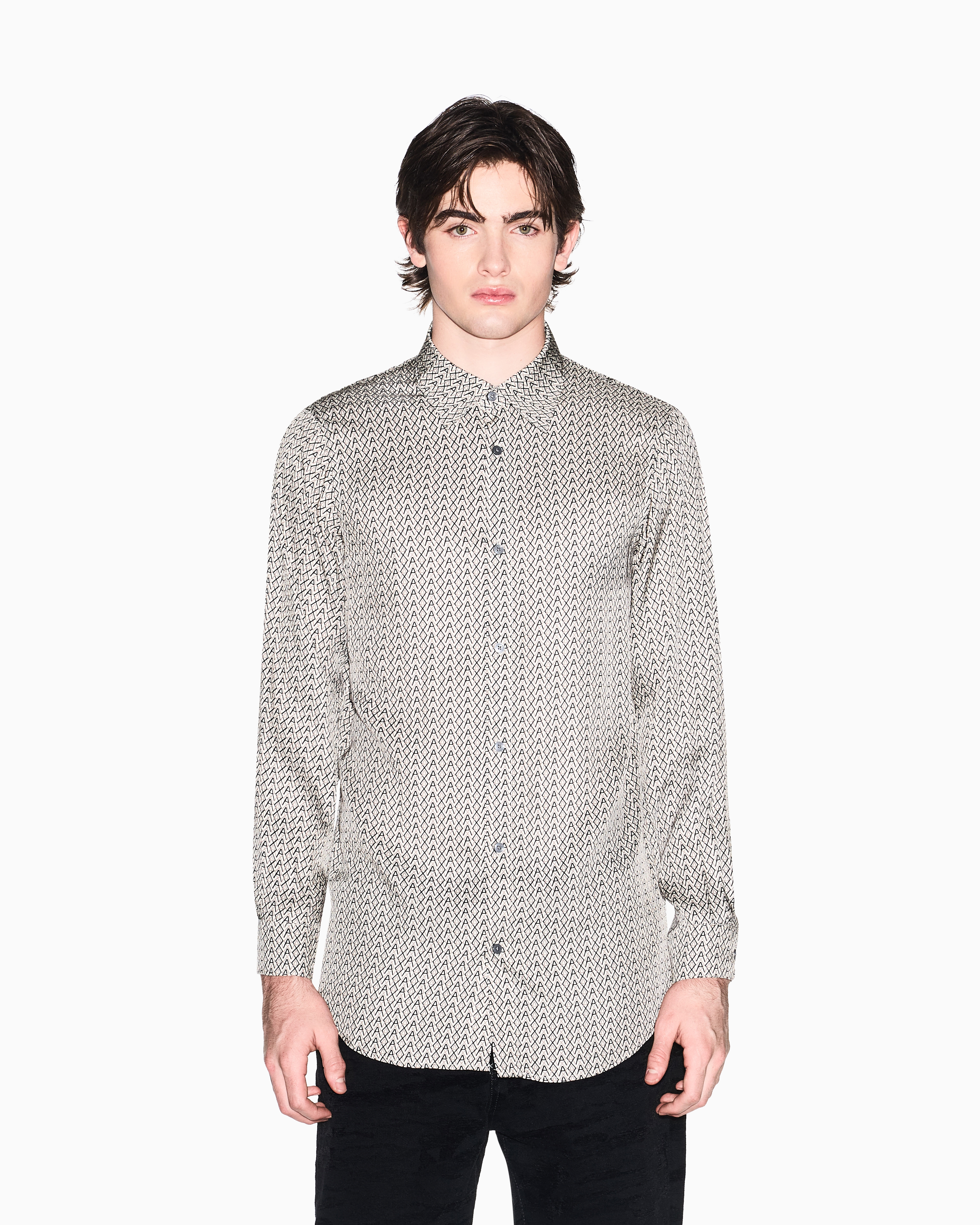 Dal carattere distintivo e contemporaneo, questa camicia Armani Exchange è pensata per chi cerca un capo elegante con un tocco grafico. Realizzata in tessuto leggero e confortevole, presenta una raffinata stampa all-over con monogramma AX, che dona dinamismo al design. Il modello è caratterizzato da collo classico, chiusura frontale con bottoni e maniche lunghe con polsini, elementi che mantengono una linea pulita e versatile. La stampa ripetuta valorizza l'identità del brand, rendendo il capo ideale per outfit moderni e ricercati.