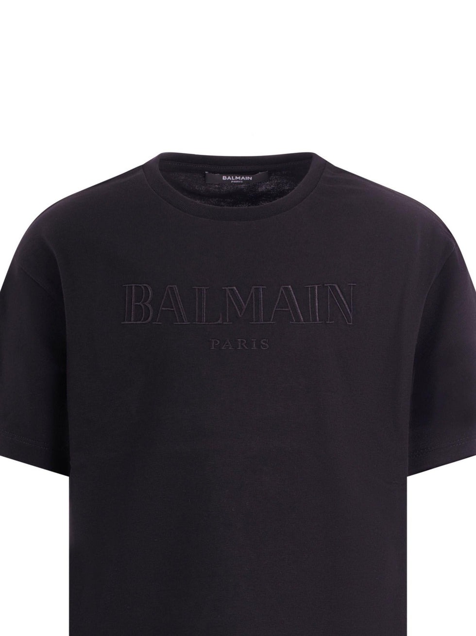 T-shirt per bambino Balmain Kids nera con logo sul davanti