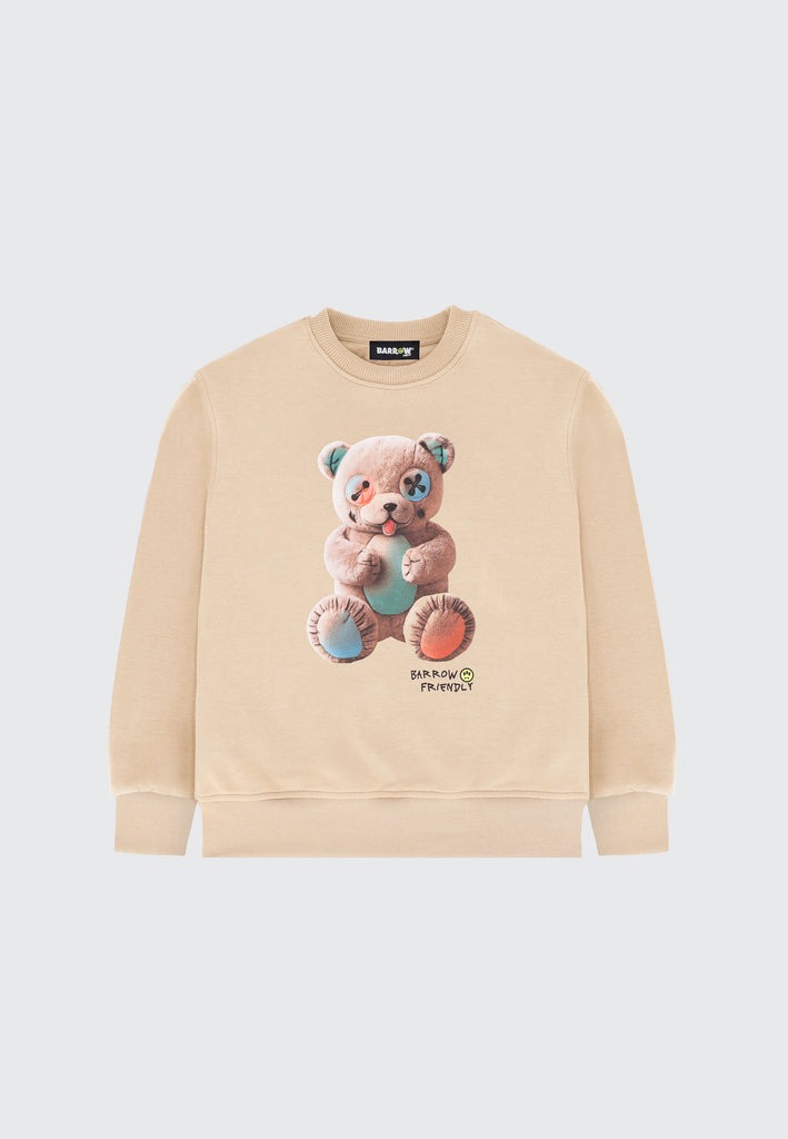 Felpa unisex in morbido cotone con vestibilità regular, caratterizzata dall'iconico orsetto multicolor stampato sul davanti, simbolo distintivo del brand e dettaglio che dona un tocco playful e contemporaneo. Il girocollo, i polsi e il fondo lavorati a coste assicurano comfort, resistenza e una tenuta impeccabile durante tutta la giornata. Perfetta per l'uso quotidiano, per la scuola o per valorizzare outfit streetwear moderni, è un capo versatile e ideale per chi ama uno stile creativo e immediatamente riconoscibile.