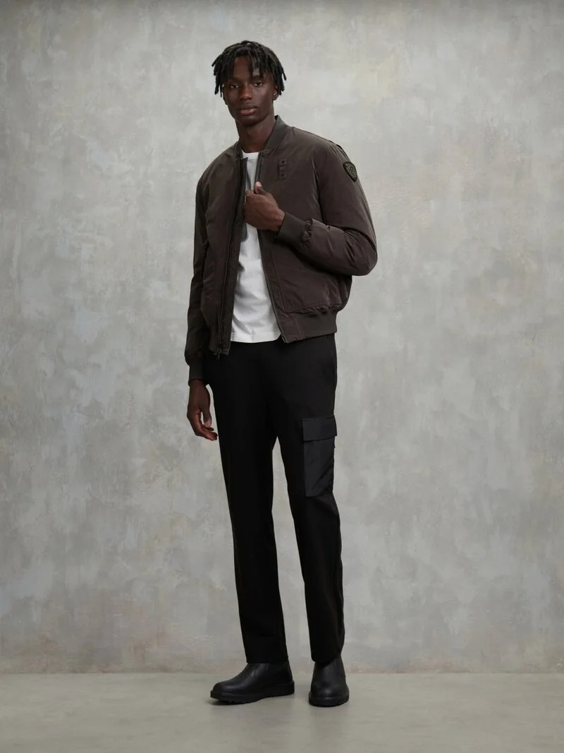 Giubbetto taglio bomber con imbottitura ecologica e dal tessuto morbido e confortevole al tatto. Capo classico e contemporaneo che combina l'ambiente miliare allo stile Urban.
