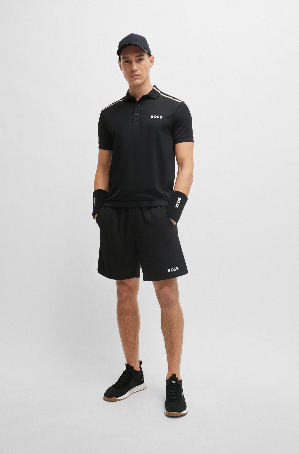 Bermuda idrorepellenti straight fit BOSS Uomo realizzati in materiale super elasticizzato con vita ad altezza regolare e logo stampato a contrasto. Questo articolo fa parte della collezione capsule BOSS x Matteo Berrettini, ricca di capi dinamici e creata in collaborazione con il tennista professionista italiano.