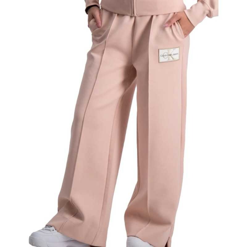 I pantaloni Calvin Klein sono realizzati in misto cotone. Il modello ha un taglio di media lunghezza, elastico in vita e gamba svasata in una vestibilità comoda. Due tasche laterali offrono lo spazio di archiviazione perfetto per i tuoi oggetti essenziali. Una toppa con logo e spacchi laterali aggiungono stile.