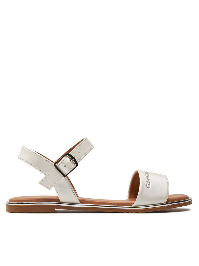 Sandali per bambina con chiusura a fibbia posto nella parte superiore, logo impresso nella parte frontale, mini tacco