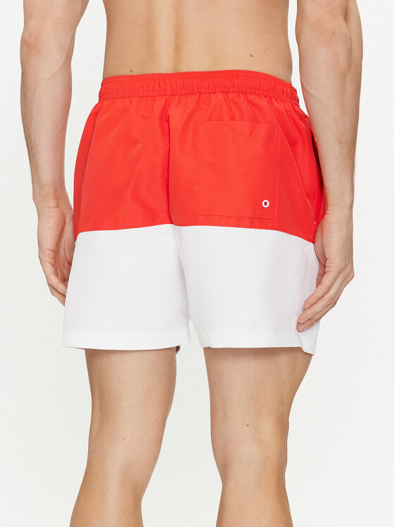 Costume da bagno con logo in lettering posto lateralmente a contrasto colore, bicolore, chiusura tramite vita elasticizzata e lacci, tasche laterali