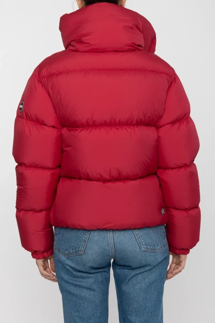 Questa giacca è realizzata in un tessuto morbido con un aspetto opaco e un trattamento idrorepellente. È imbottita con piuma naturale ed è caratterizzata da ampi trapunti regolari che coprono tutto il corpo. La chiusura con bottoni e la presenza di una coulisse regolabile in fondo permettono di adattare la vestibilità.