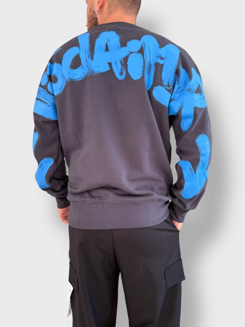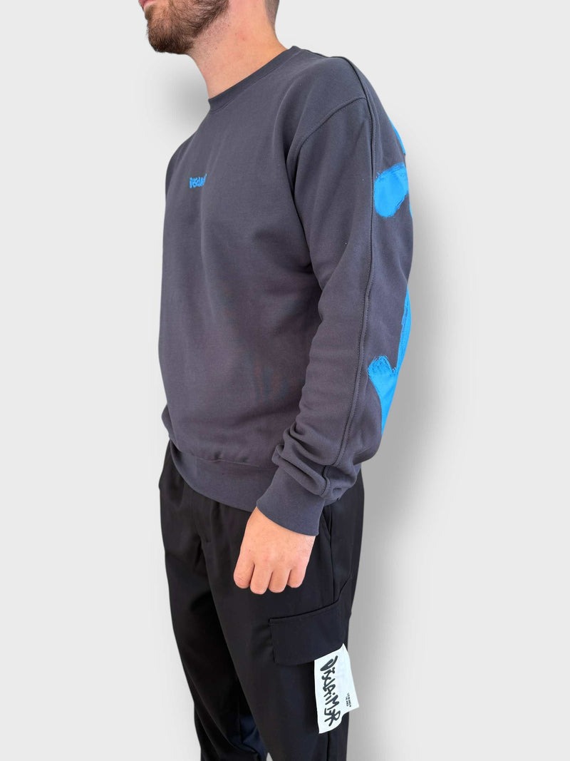 Ha una vestibilità regular con girocollo e polsini a costine, offrendo comfort e praticità. Sul fronte è decorata con il logo del brand in piccolo, mentre il retro e le maniche sono caratterizzati da una maxi stampa effetto pennellata che crea un look grintoso e streetwear.