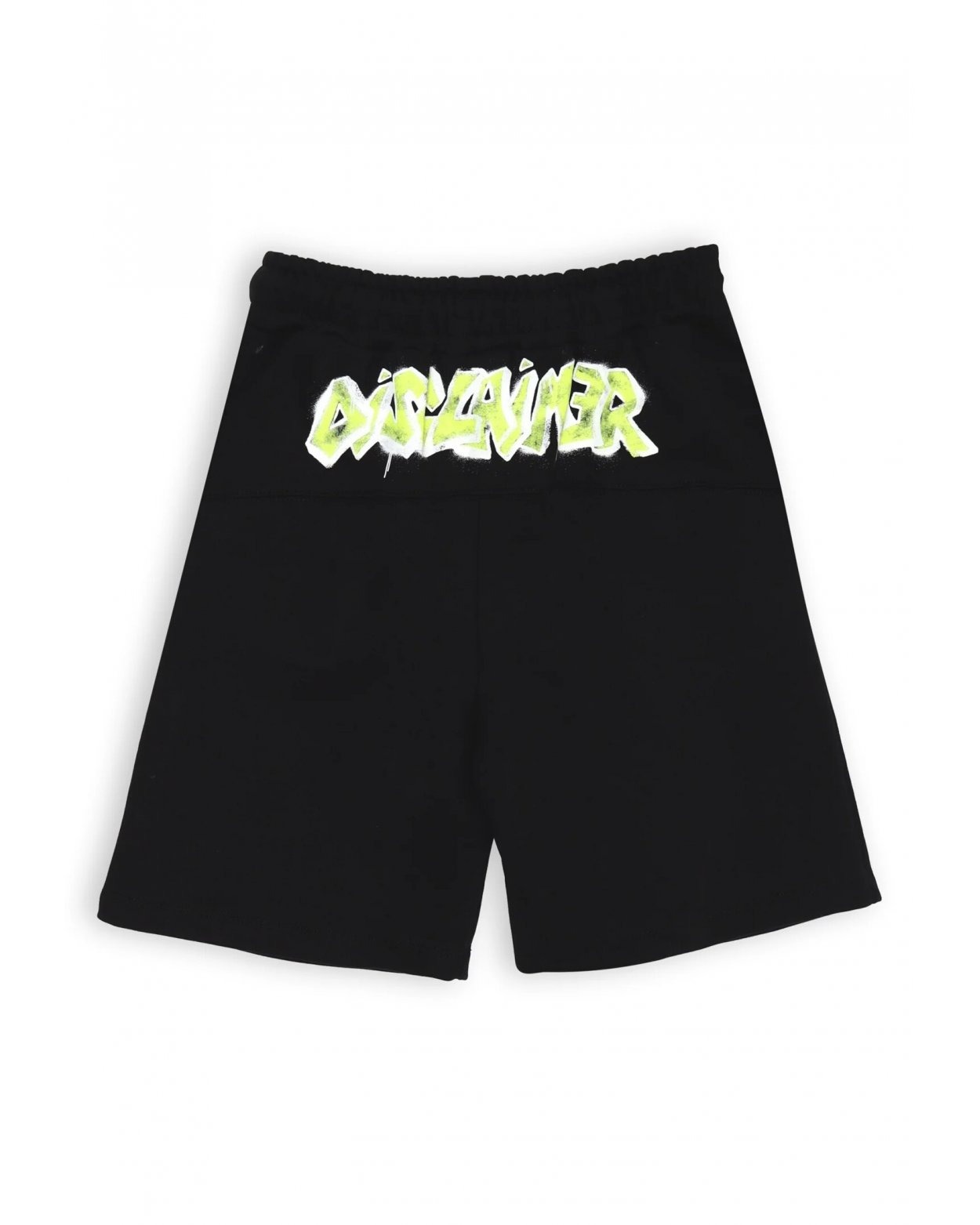 Bermuda ragazzo Disclaimer, in cotone non garzato, fascia elastica e culisse in vita, tasche, stampato dietro