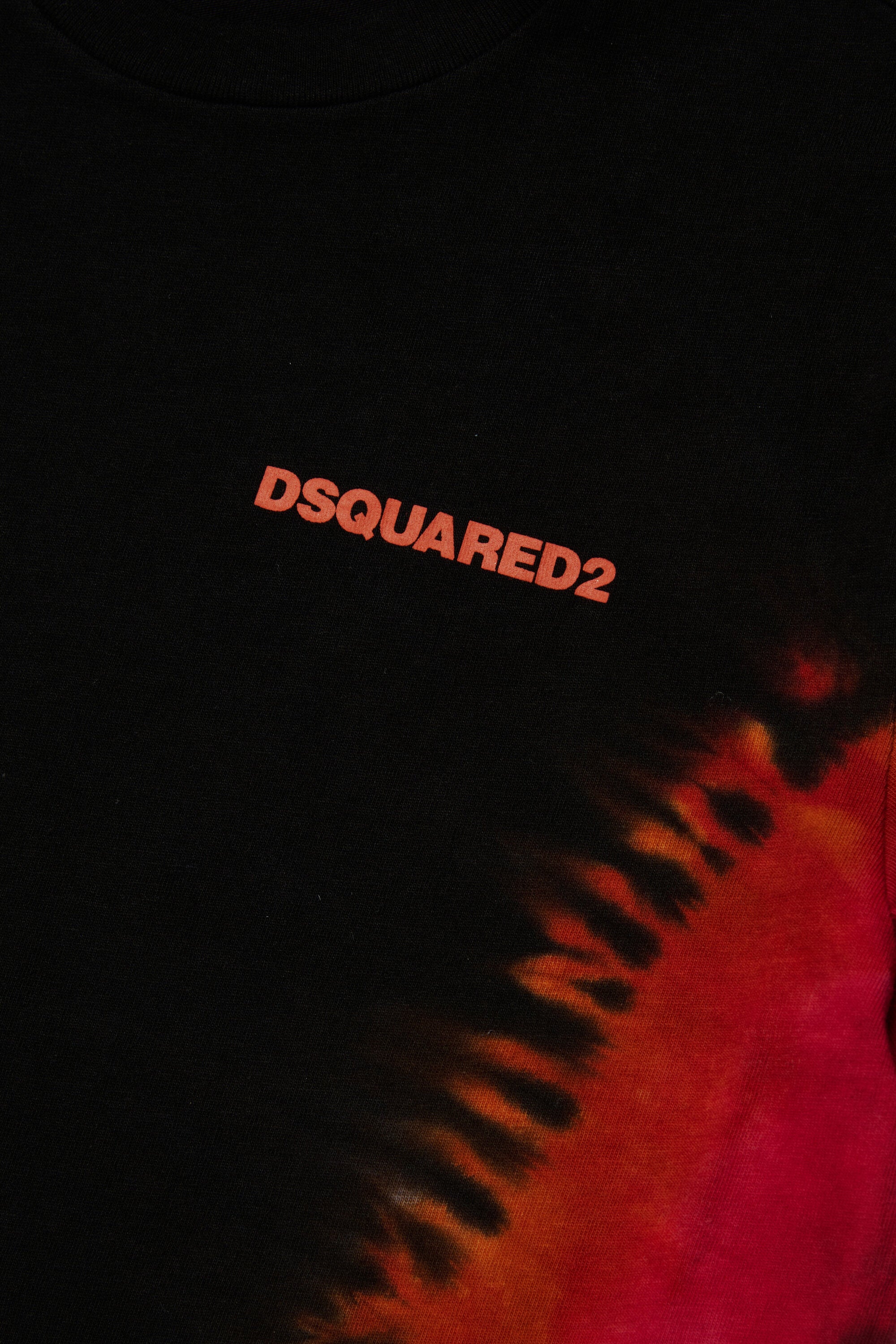 T-shirt girocollo a maniche corte in jersey. Vestibilità relax, regolare. Presenta un effetto tie-dye gothic localizzato sui lati. Logo Dsquared2 a contrasto colore sul davanti lato cuore. Realizzata in 100% cotone.