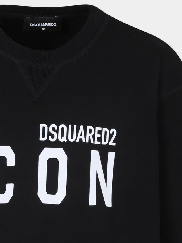Felpa nera in cotone garzato, a maniche lunghe, con girocollo, polsini e orlo a costine. È decorata con stampa logo Icon sul davanti.