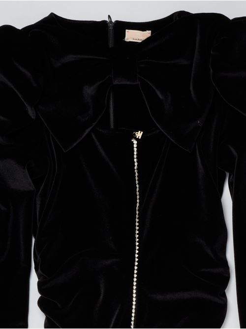 ABITO IN VELLUTO STRETCH CON APPLICAZIONE STRASS NERO
