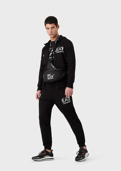 Spirito sporty casual per questi pantaloni joggers dalla vestibilità confortevole realizzati in cotone. Un capo vesatile, impreziosito dal maxi logo EA7 sulla gamba sinistra, perfetto per completare outfit per il tempo libero o la palestra.