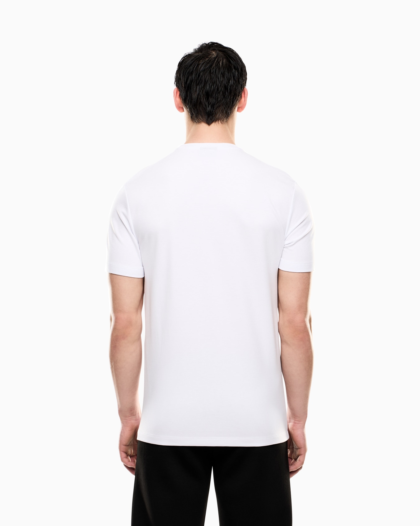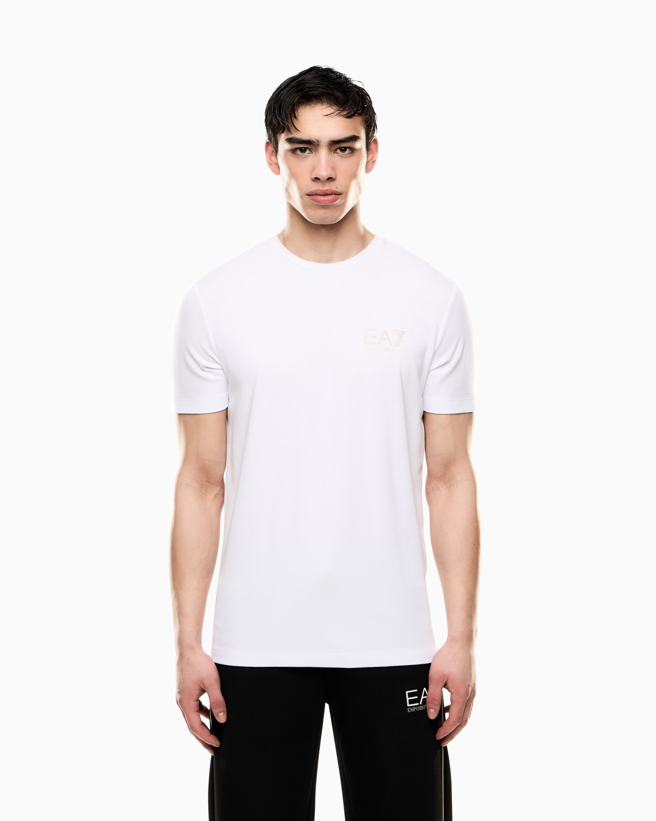 T-shirt girocollo essenziale dalla vestibilità slim, realizzata in misto viscosa stretch. Un modello a maniche corte perfetto per il tempo libero, personalizzato dal logo EA7 sul petto. Uno stile più ricercato ed elegante caratterizza la proposta Gold Label: capi realizzati in tessuti confortevoli e personalizzati dall'inconfondibile tocco gold, per uno stile sporty chic.