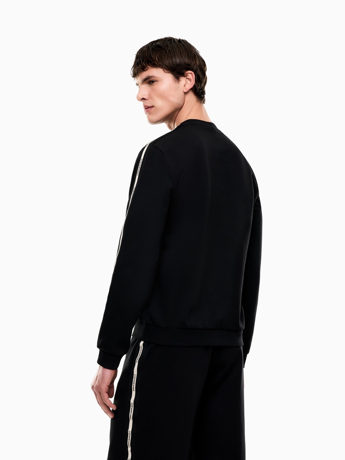 Felpa girocollo realizzata in morbido interlock di misto cotone. Il modello, è personalizzato dal logo tape EA7 a contrasto lungo i profili delle maniche e dal logo EA7 a contrasto sul petto., che richiama anche altri capi della collezione Logo Series