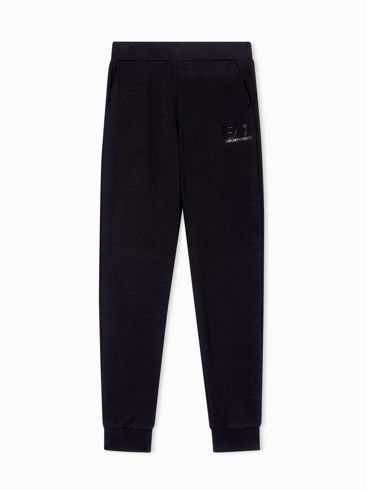 Pantaloni con vita elastica e personalizzazione con logo EA7 in tono sul fianco sinistro, realizzati in misto cotone stretch. Un capo versatile e comodo che si presta a look per l'allenamento e il tempo libero.