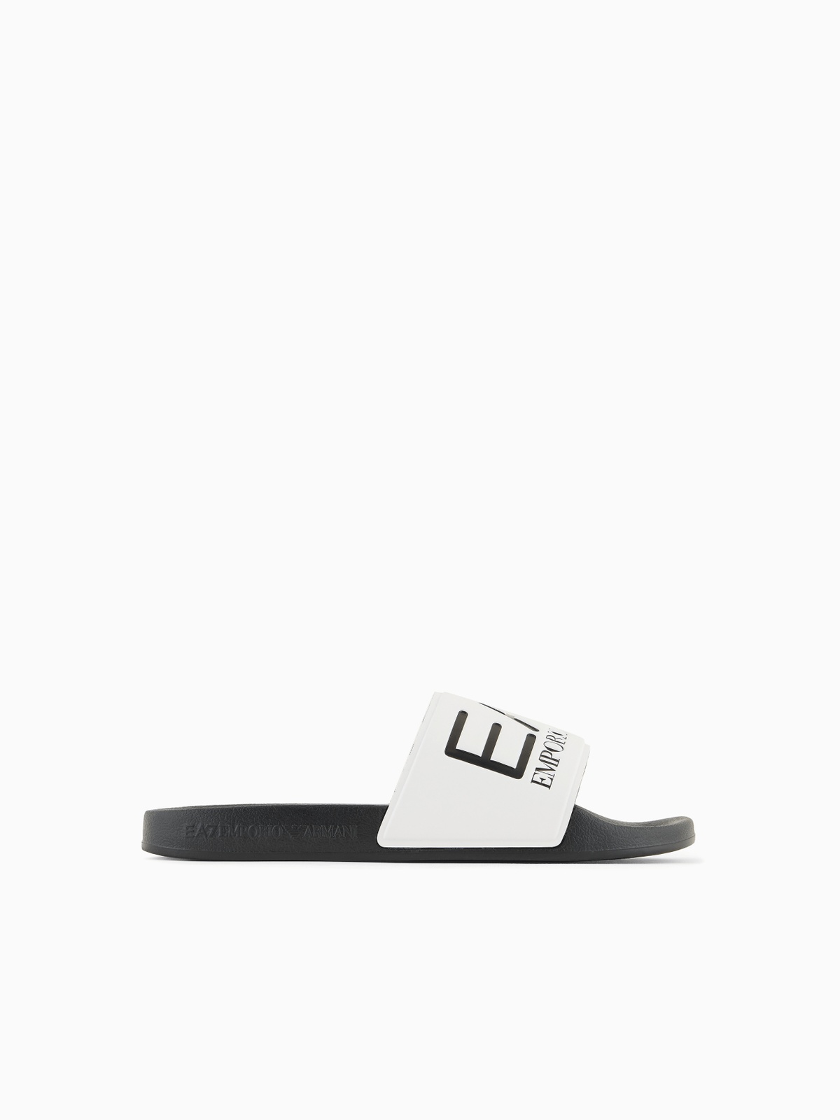 Slides definite dalla maxi fascia decorata dal maxi-logo EA7. Un modello versatile, perfetto per la piscina e la spiaggia o da portare con sé in palestra.