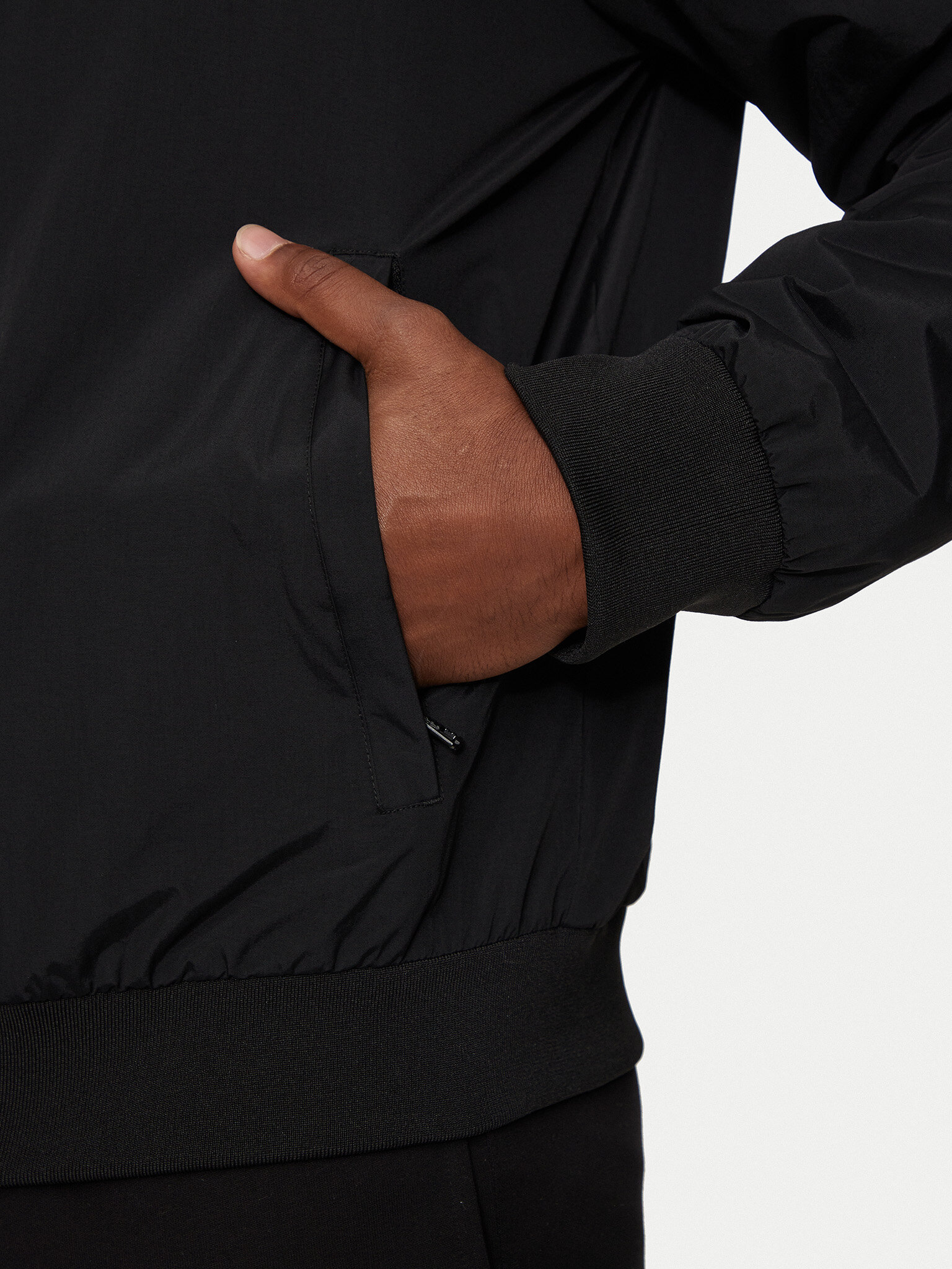 Bomber con cappuccio versatile e comodo, realizzato in tessuto tecnico, dotato di chiusura con zip e tasche laterali, pensato per il tempo libero e lo sport. Un modello impreziosito dal logo sul petto, perfetto da abbinare ai jogger e alle felpe di collezione o da indossare sopra look casual.