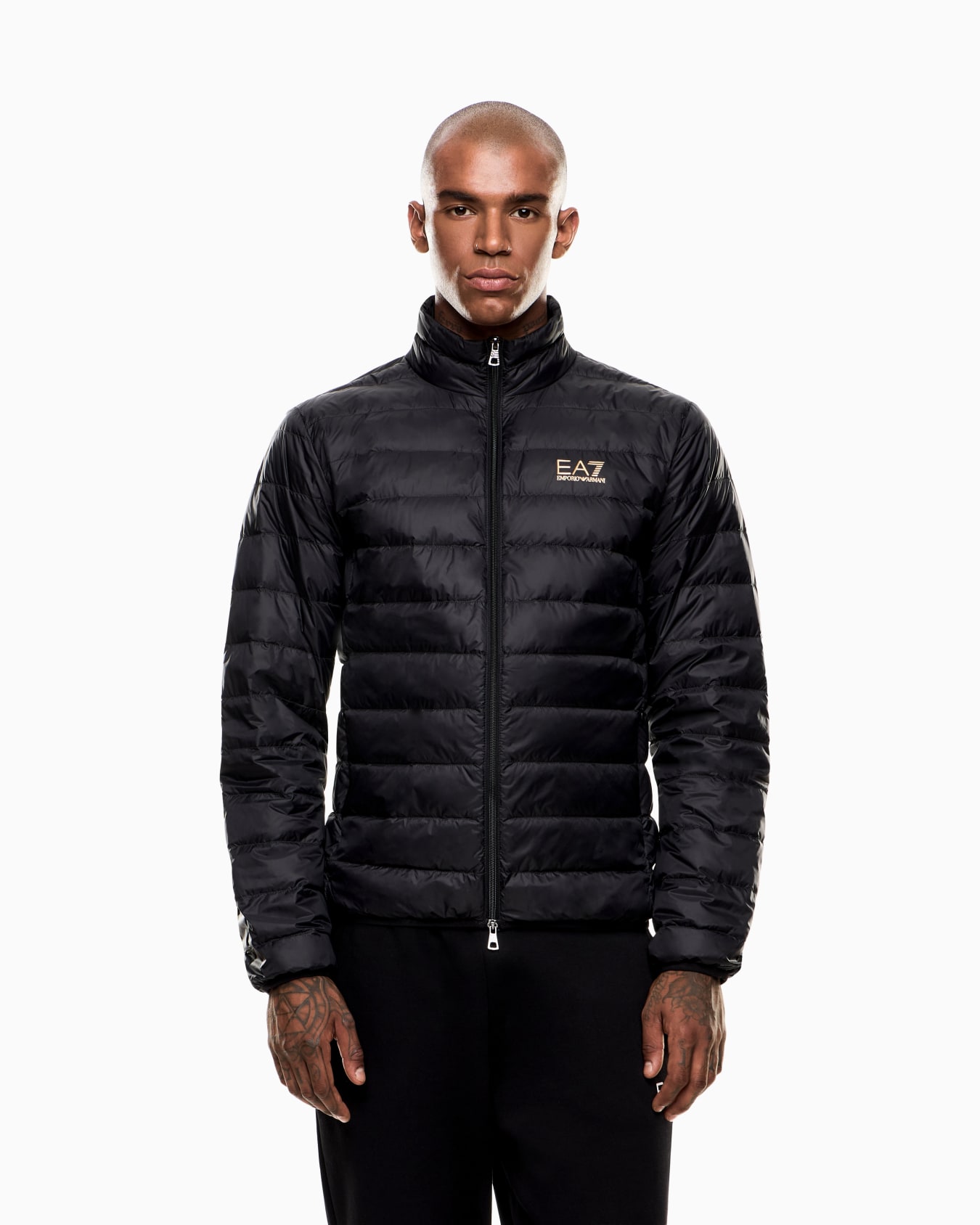 Questo piumino combina l'imbottitura in piuma d'oca con il tessuto tecnico per dar vita a un capo caldo e confortevole. Il modello è dotato di chiusura frontale con zip, collo montante, due pratiche tasche laterali ed è personalizzato dal logo EA7 a contrasto sul petto. Il capo è packable e può essere richiuso nella sua dust bag.
