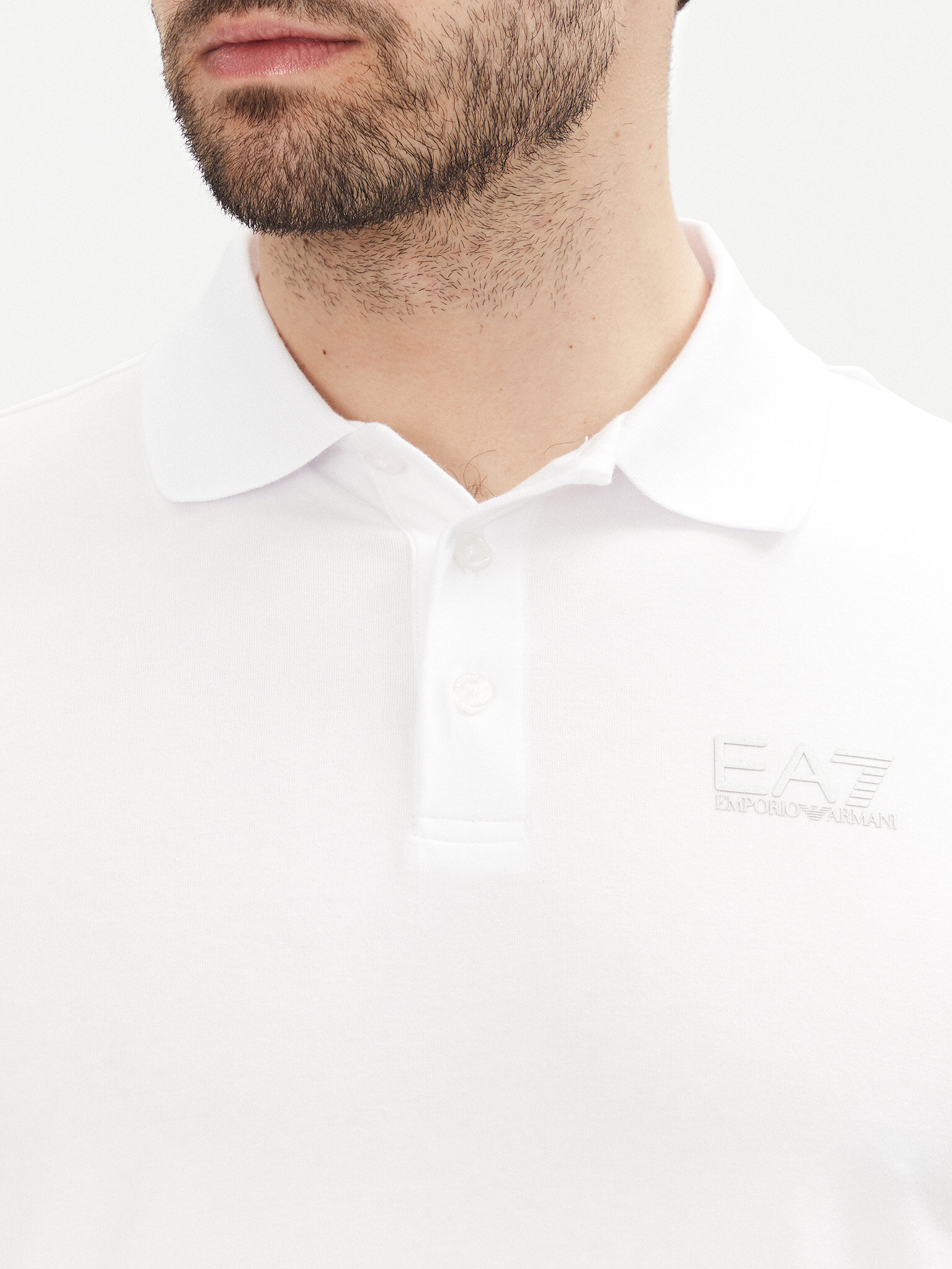 Polo realizzata in jersey di cotone stretch dallo stile minimal e versatile. Il modello ha collo classico con bottoni, logo EA7 stampato a contrasto sul petto e maniche corte.