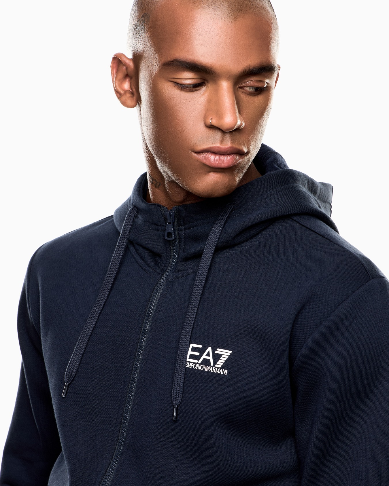 Completa i tuoi look sportivi con questa felpa con cappuccio e chiusura con zip dalla vestibilità confortevole. modello, realizzato in morbido misto cotone, presenta due tasche laterali, profili elasticizzati ed è personalizzata dal logo EA7 stampato a contrasto sul petto.