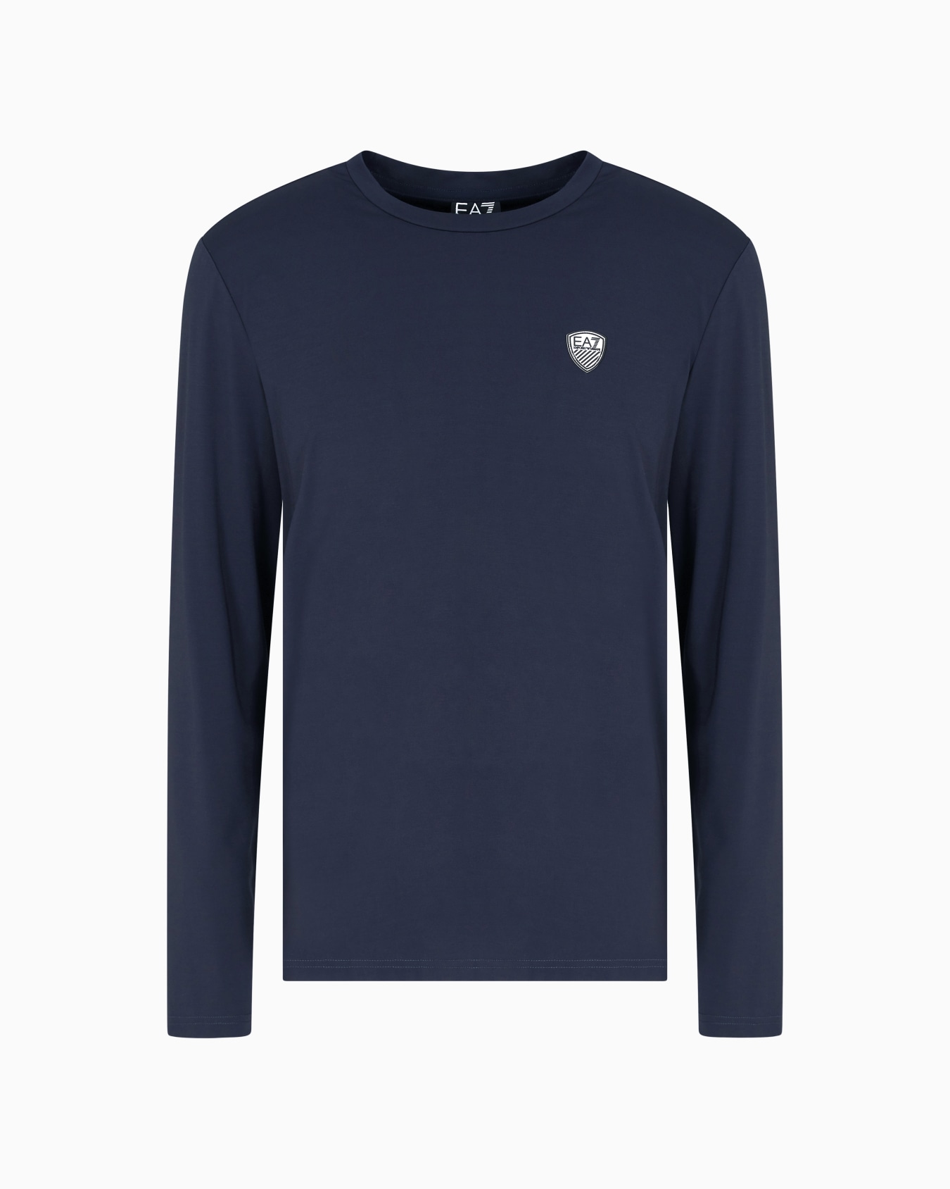 T-shirt girocollo a maniche lunghe realizzata in jersey di misto viscosa stretch, impreziosita dal logo a scudo EA7 dal finish metallizzato. Un capo versatile e confortevole, perfetto complemento di look sportivi.