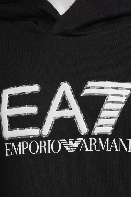 Felpa EA7 da bambino garzata in cotone, a manica lunga, con cappuccio fisso, logo e maxi monogramma frontali in stampa camouflage e gommata rigonfiante sovrapposta a contrasto colore, tascone a marsupio, polsini e cannolè in maglia Composizione: 100% cotone