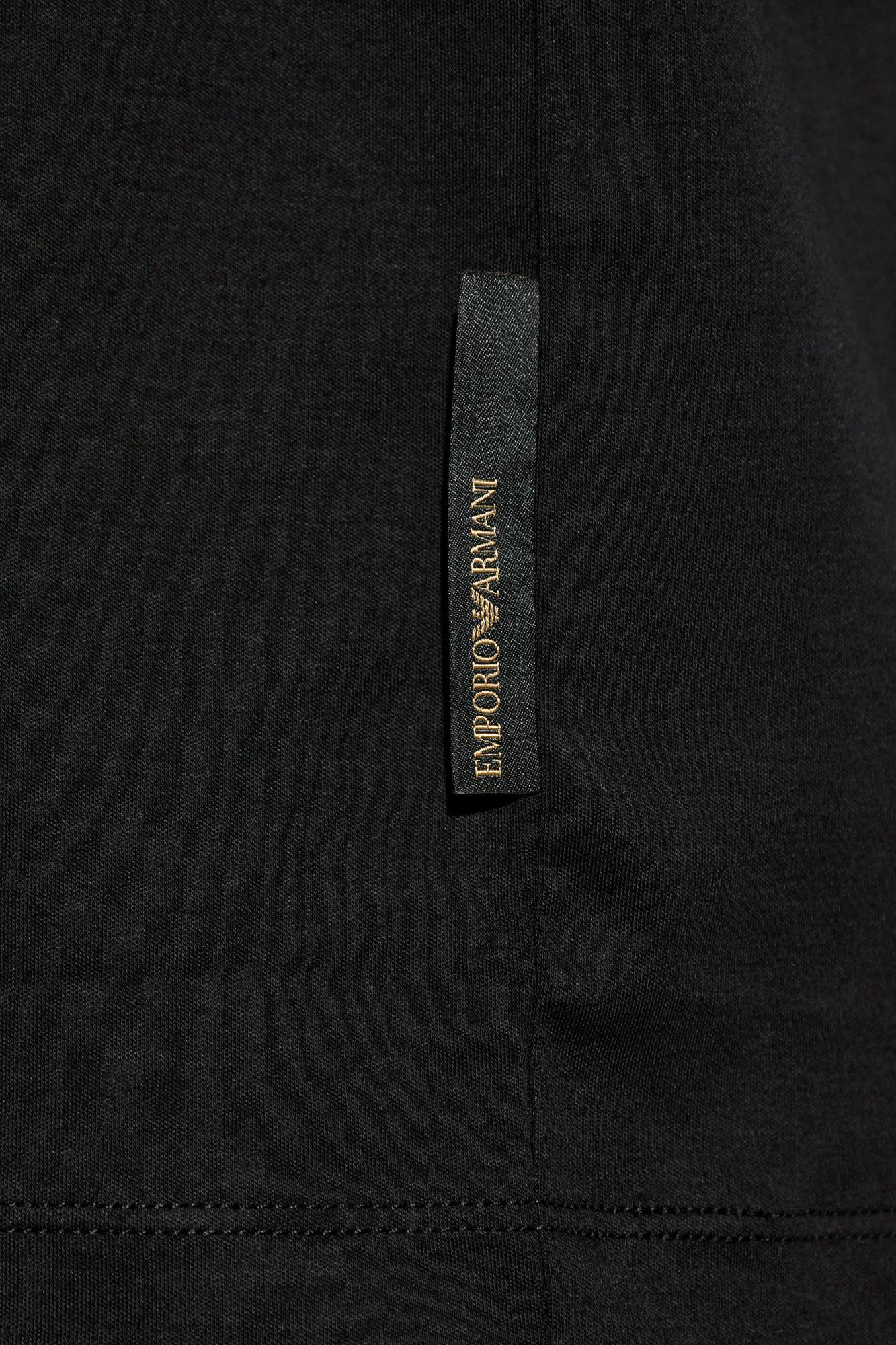 La superficie liscia e solida della t-shirt, priva di fantasie e stampe, ne evidenzia la sottile eleganza. Un ulteriore vantaggio è la piccola etichetta nera con la scritta dorata "Emporio Armani", discretamente posizionata su un lato, che ne esalta il carattere raffinato.