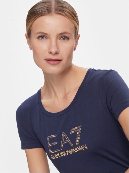 T shirt EA7 Emporio Armani realizzata in tessuto misto modal; un modello girocollo caratterizzato dal logo frontale ricamato. Un modello perfetto per ogni outfit alla moda