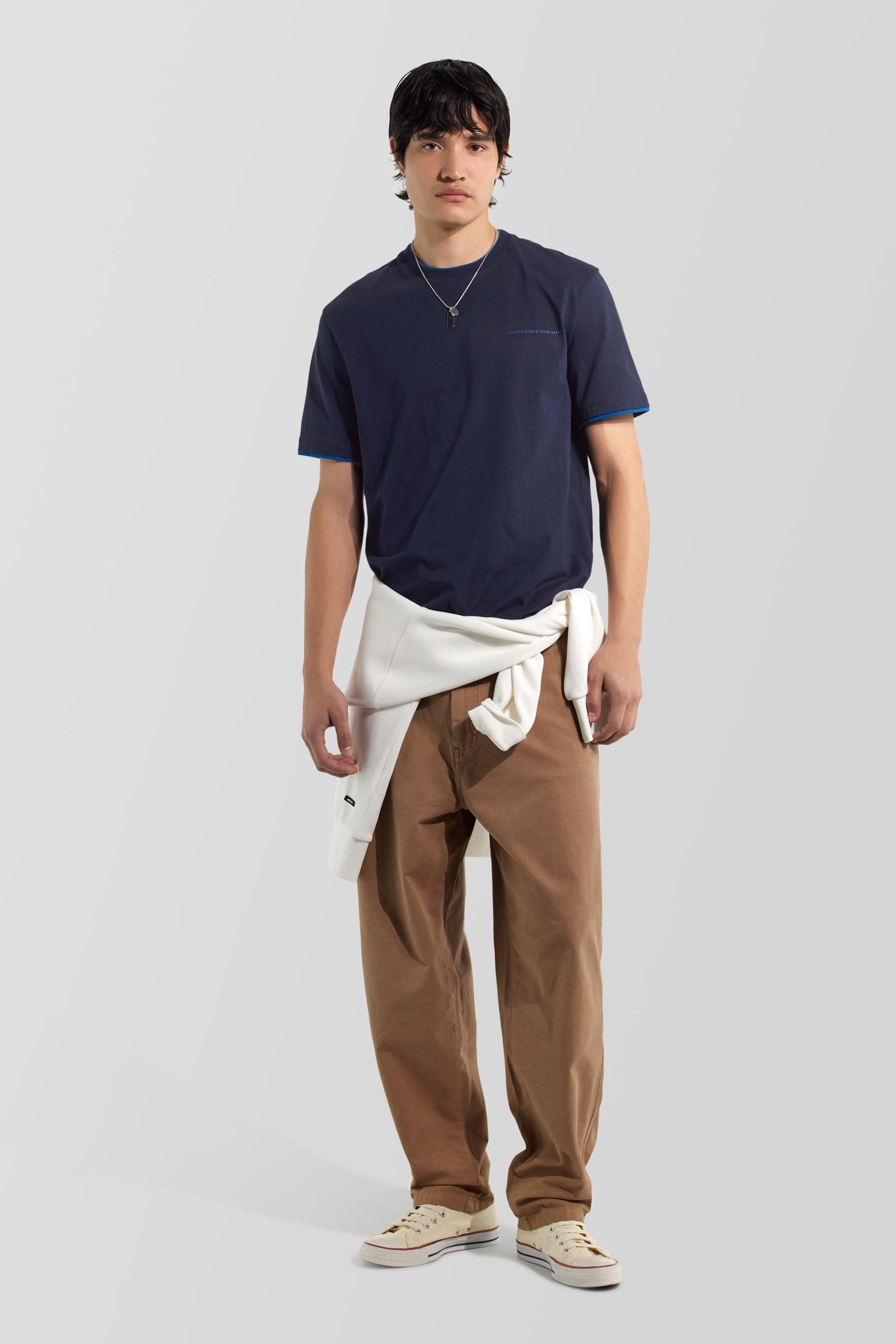 T-shirt manica corta in jersey di cotone, regular fit. Il design è definito dalla stampa spessorata sul davanti e da inserti a contrasto su collo e maniche che arricchiscono la linea essenziale del capo. Un must-have nel guardaroba daily perfetto per ogni stagione.