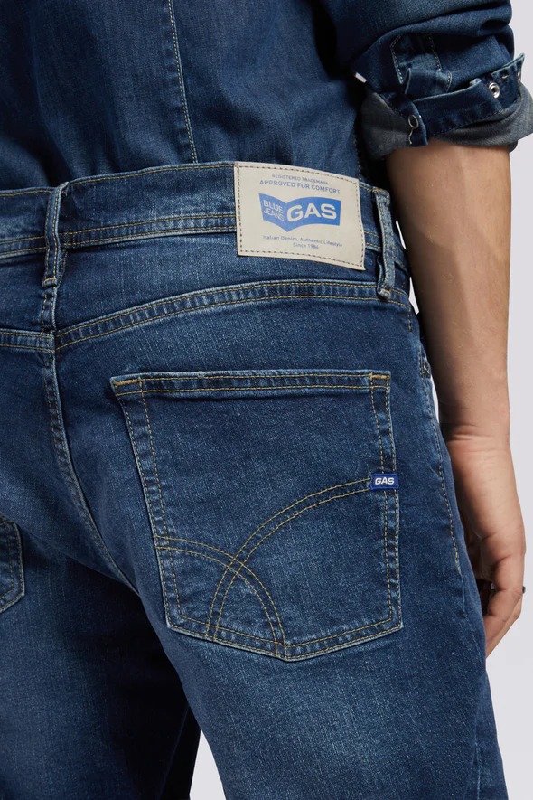 5 tasche al ginocchio dal look pulito e proporzioni che si adattano a fisicità diverse, pur mantenendo una vestibilità asciutta. La cintura, le tasche, le impunture e i rivetti sono stati rivisitati per mettere in risalto l?identità di brand e ottenere un lookpiù attuale e autentico.Lavaggio indaco basico dal tono medio chiaro. Aspetto brillante