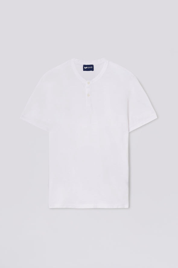 T-shirt da uomo slim fit modello serafino a due bottoni in piquet fiammato con tintura marmorizzata.