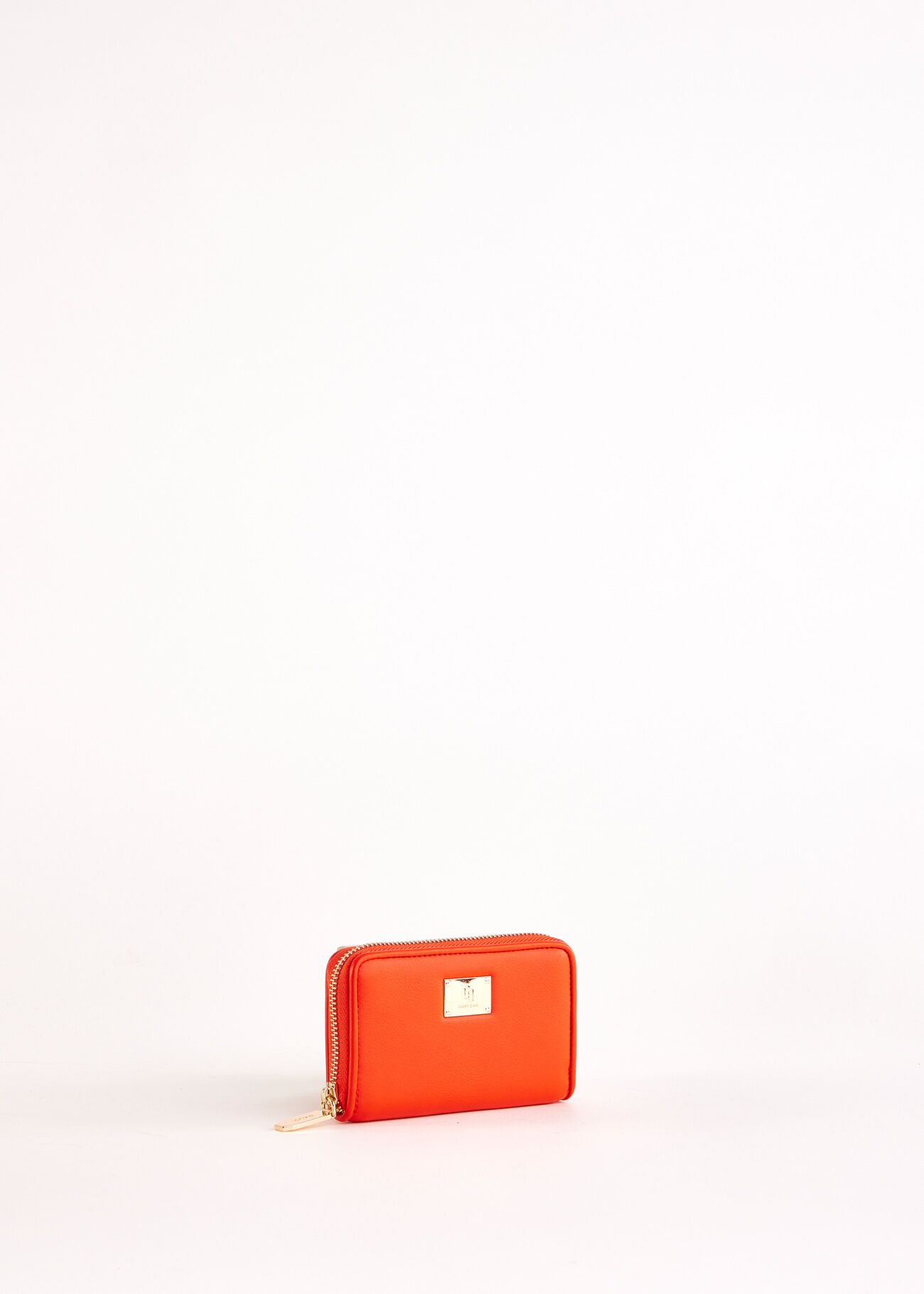 Scegli il mini portafoglio con zip in similpelle con targhetta metallica con logo. Un accessorio pratico e funzionale con un tocco di eleganza.