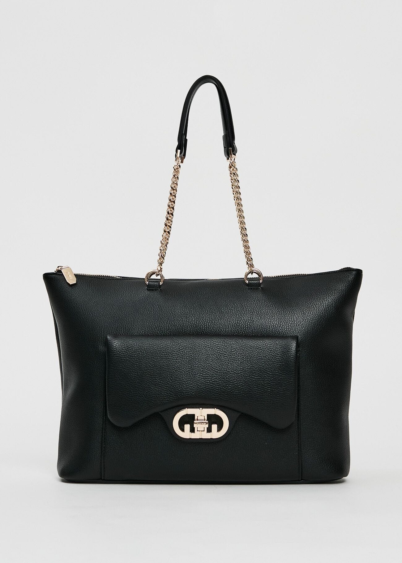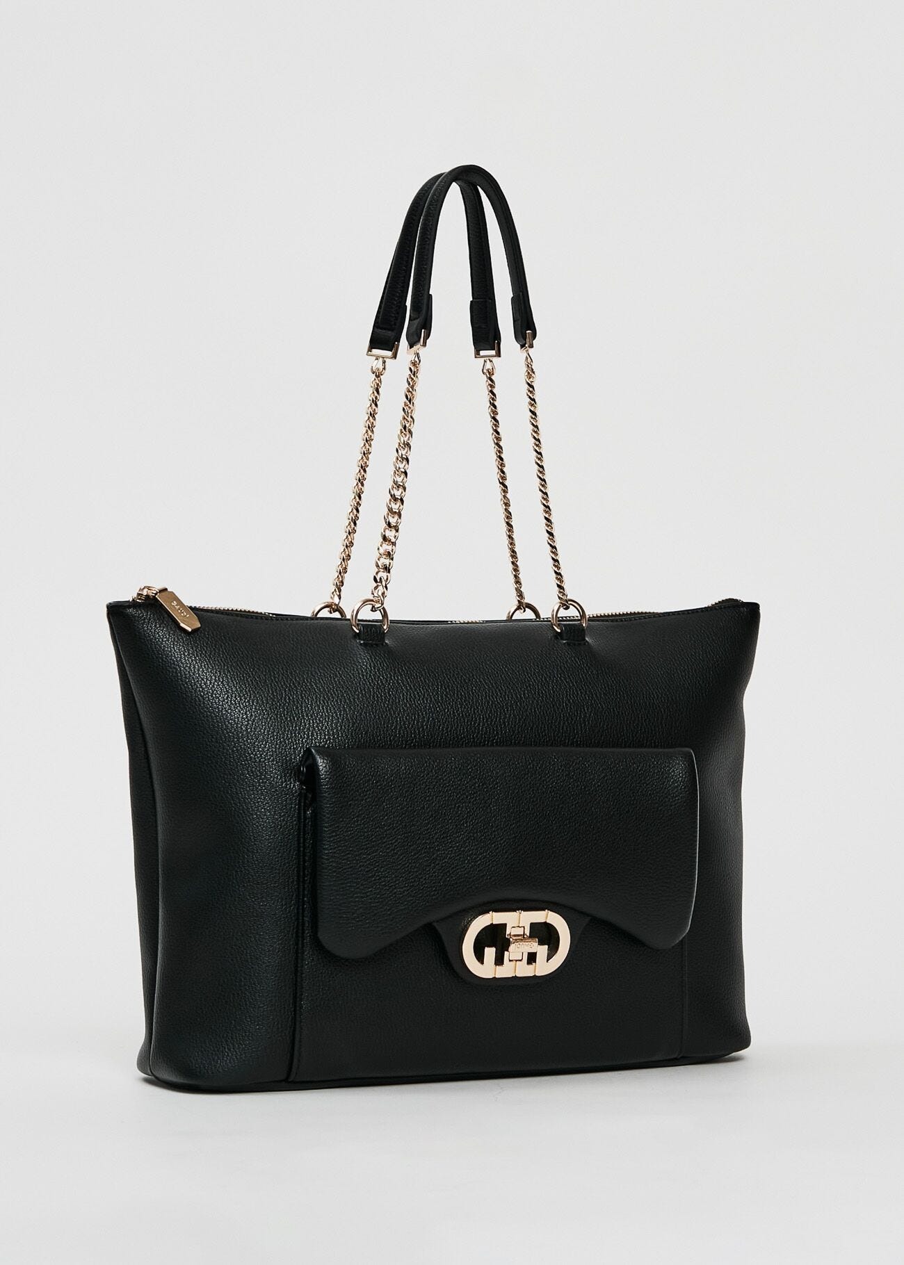 Scegli la shopping bag in morbida similpelle bottalata con logo GJ sul davanti e manici con catena. Capiente e versatile per un look elegante e contemporaneo.