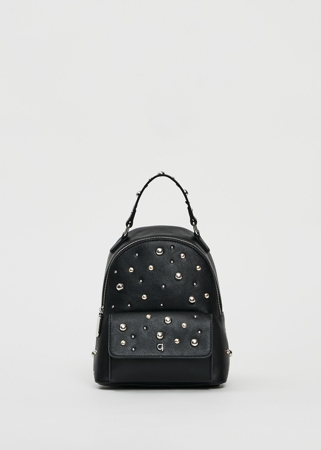 Scegli lo zaino in similpelle bottalata con borchie, logo GJ e spallacci regolabili. Perfetto per uno stile pratico dall'animo rock.