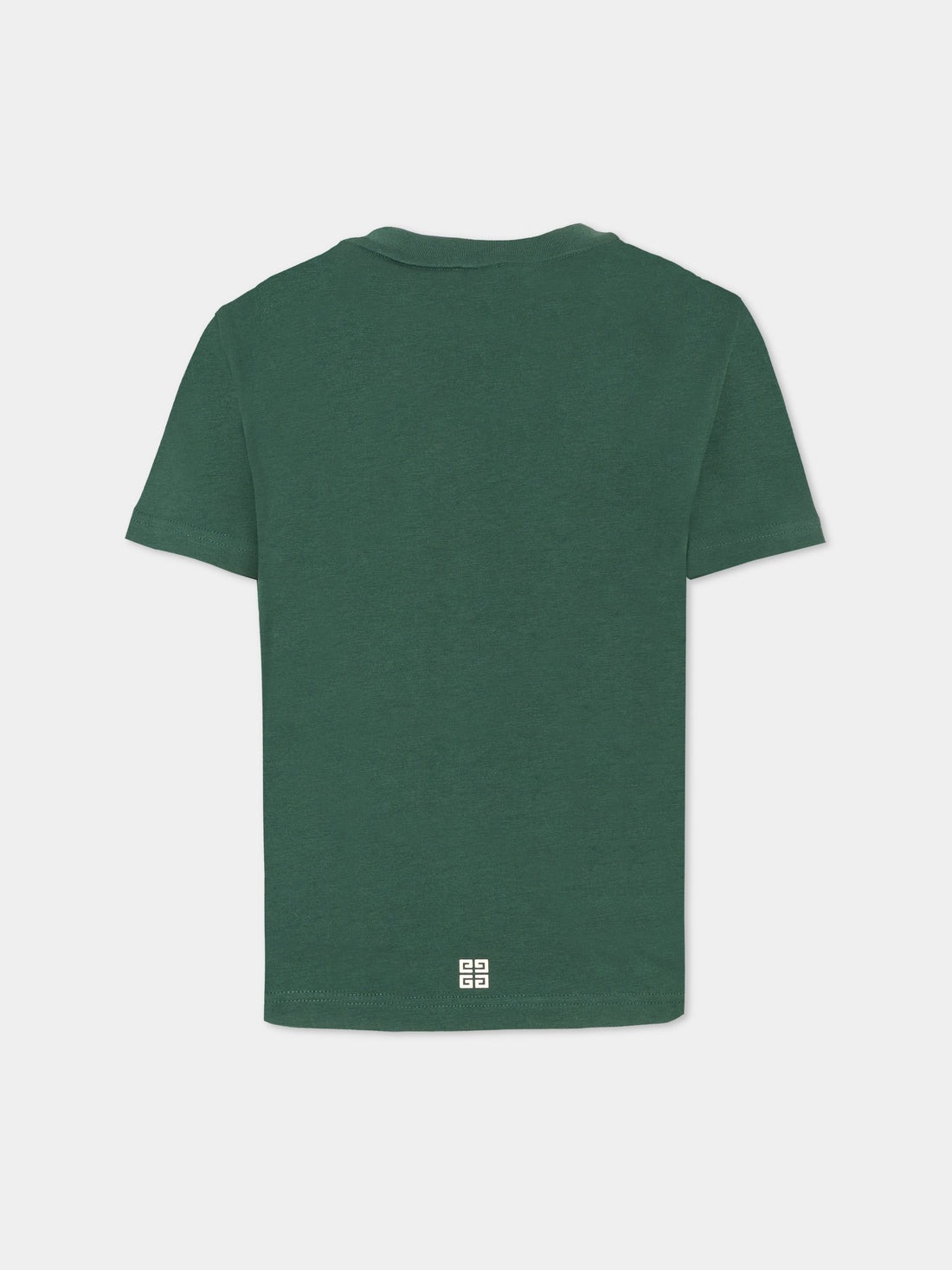 T-shirt verde del luxury brand Givenchy Kids, realizzata in cotone. Presenta maniche corte e girocollo a costine. È decorata con stampa logo sulla parte anteriore e iconico motivo 4G sul retro.