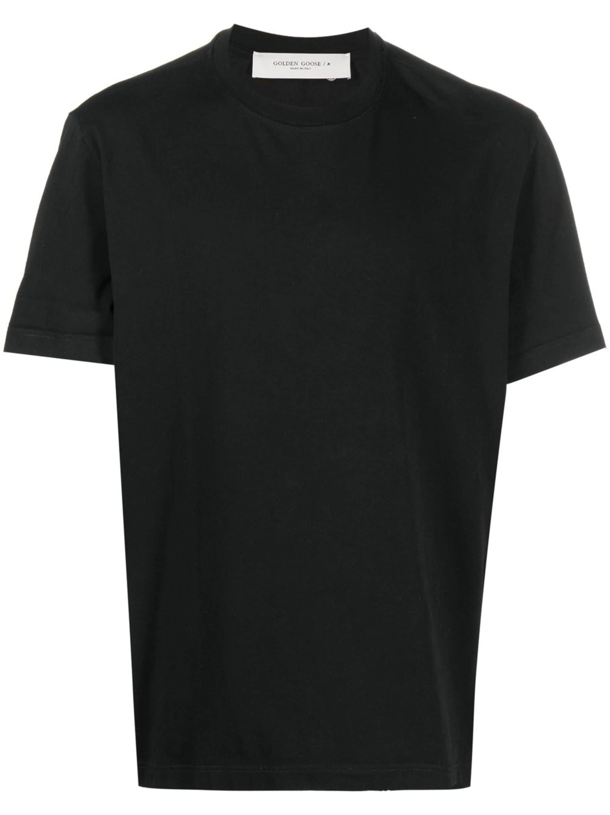 Nero, cotone, girocollo, maniche corte e orlo dritto.