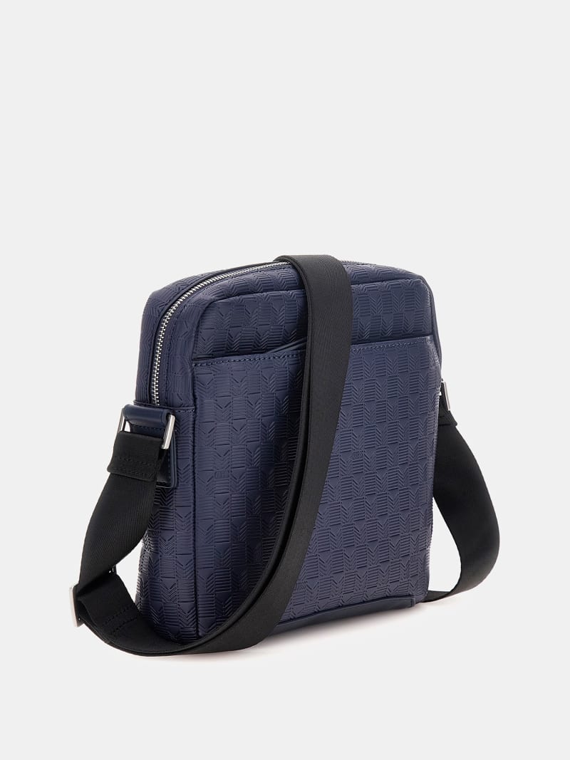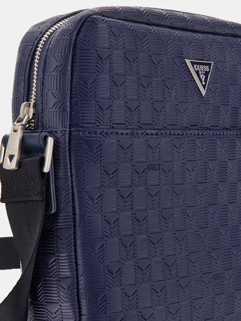 Stampa logo G-wave con finiture in pu eco liscio e hardware in nichel satinato.